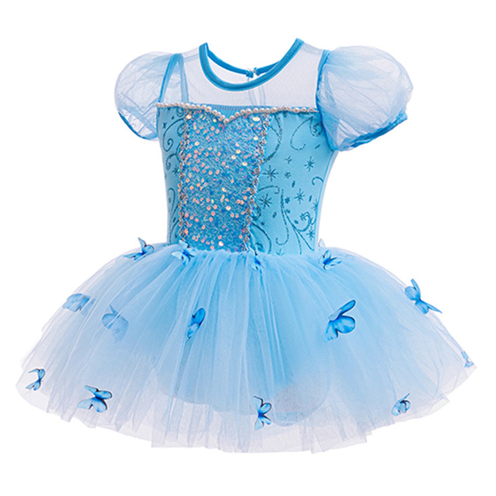 Kids Girls Dancewear Ballet Dress Short Puff Sleeve Leotards Party Outfit Tutu