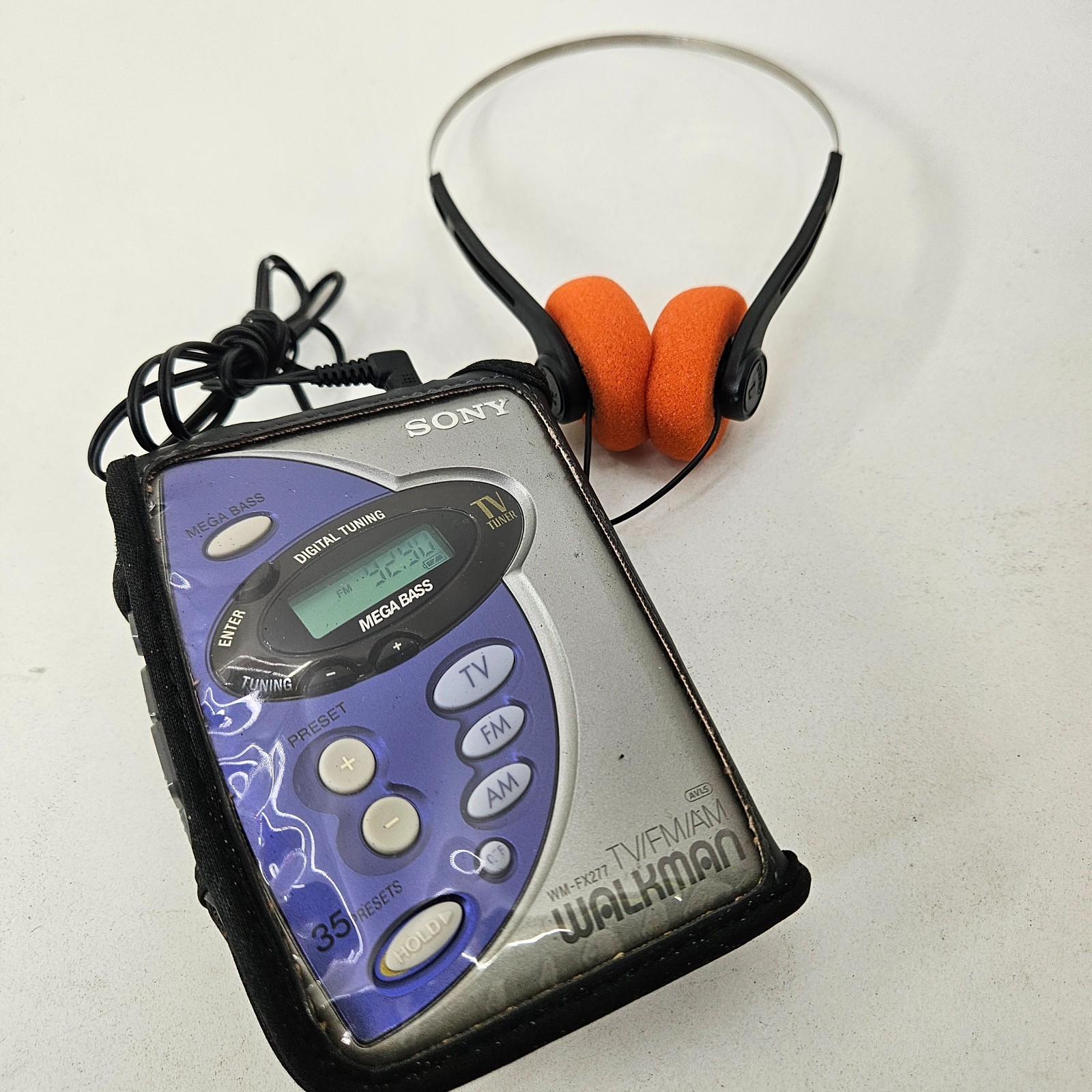 Sony Walkman WM-FX277 AM/FM Radio Cassette Player w/ Headphones and Case Bundle
