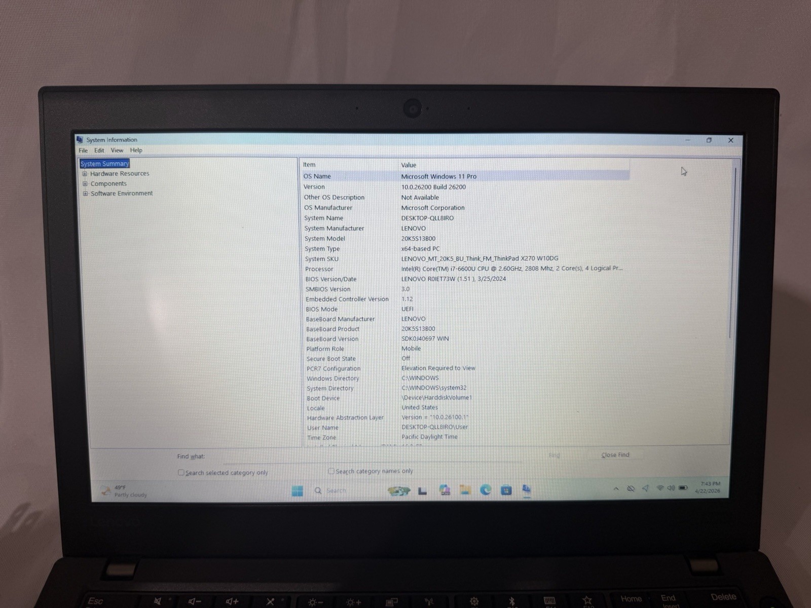 Lenovo ThinkPad X270 12.5 i7-6600U 2.60GHz 16GB RAM 256GB m2 SSD Win11Pro