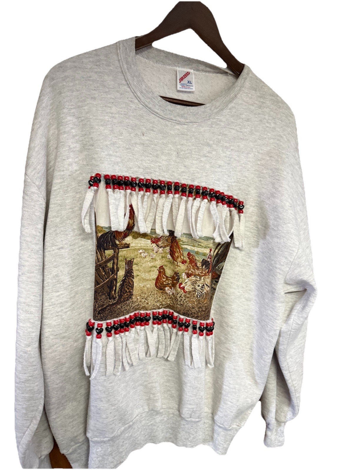 VTG 90s Jerzees Cottagecore Grandma Outdoor Fall Nature Sweatshirt Large