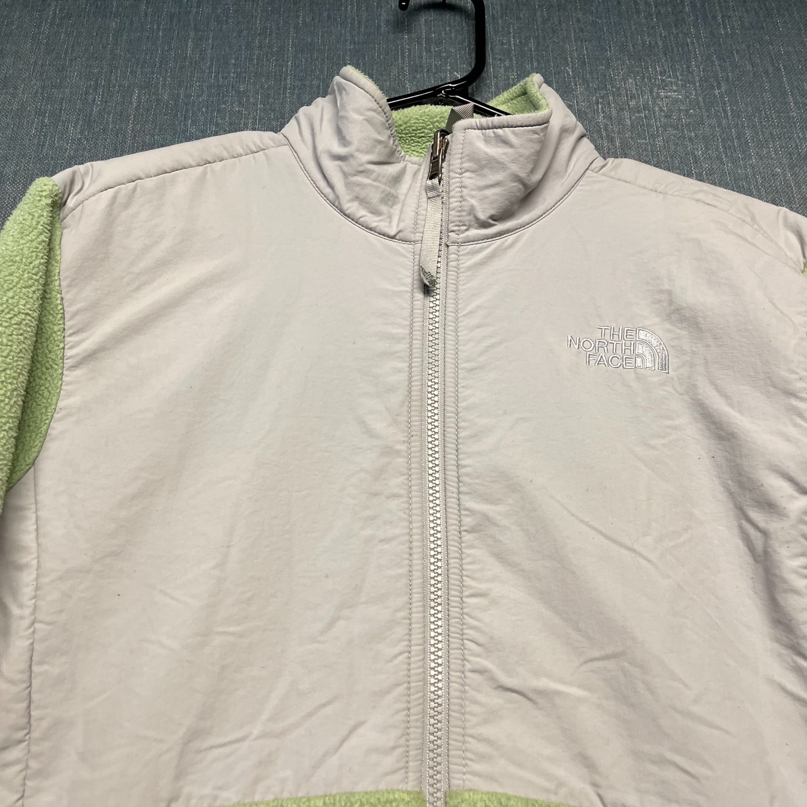 The North Face Girls Jacket Size XL Green Gray Denali Fleece Full Zip Outdoor