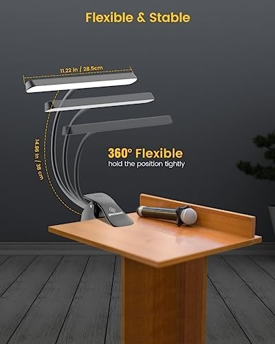 Super Bright Clip-On Music Stand Light, 3 Colors, 5 Brightness Levels, USB-C Rec