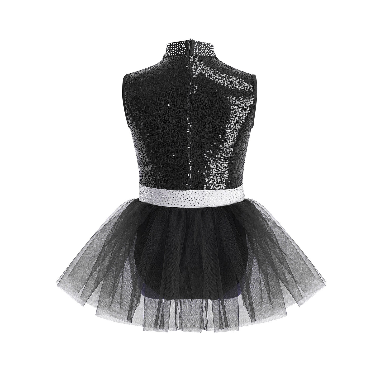 Girls Sequin Mesh Patchwork Dance Dress Rhinestone Tutu Leotard Tulle Skirt Tap