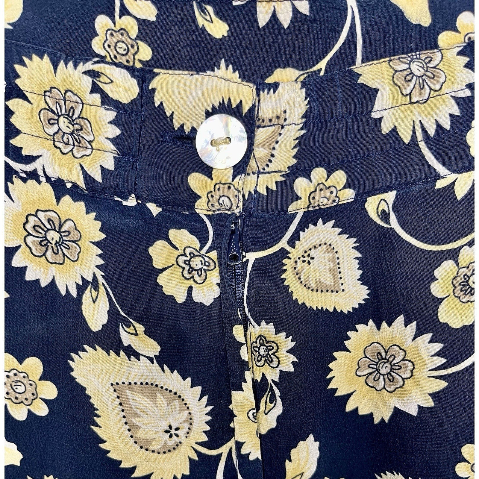 как выглядит Vintage Silk Land 100 Silk Navy Yellow Floral Skirt Size M/L фото