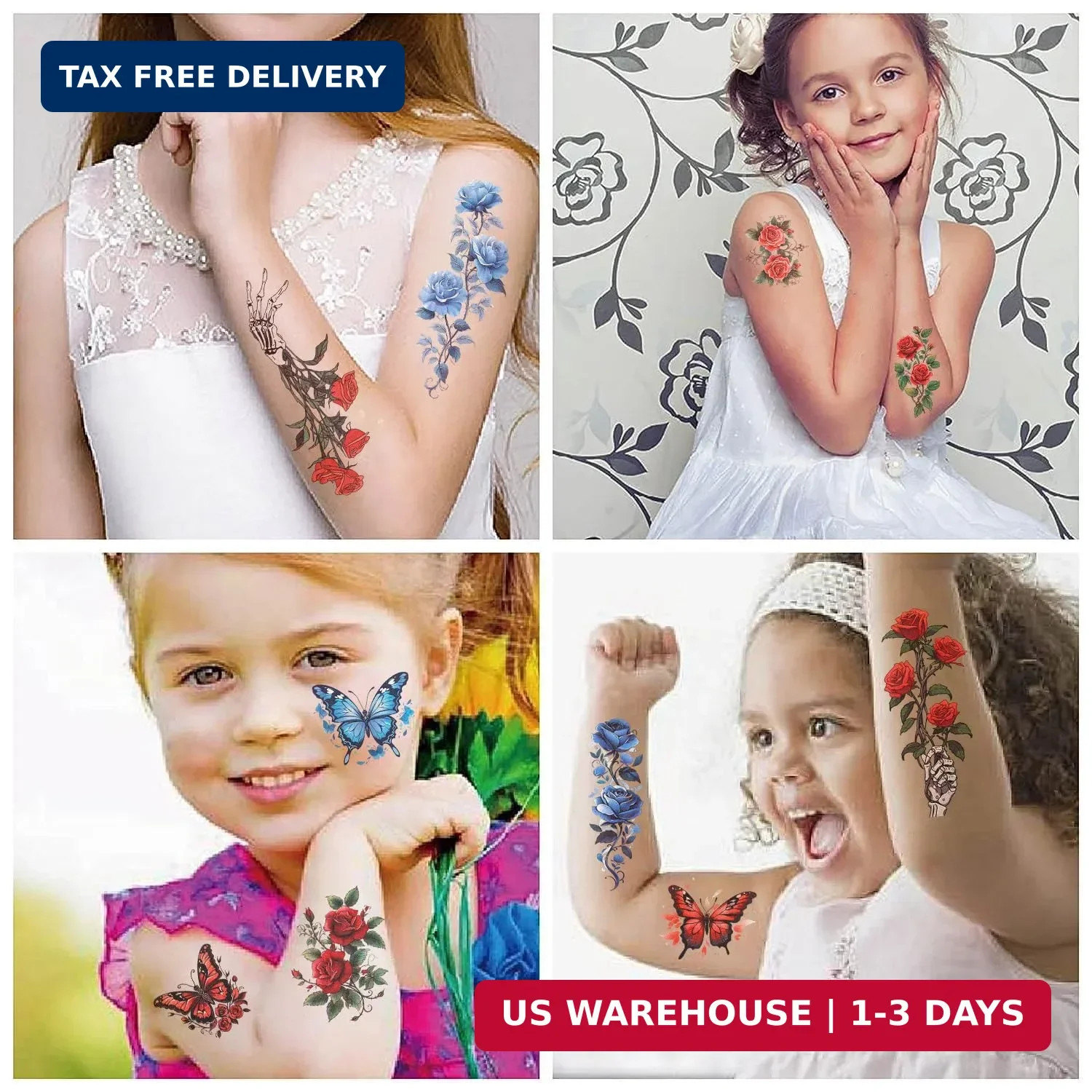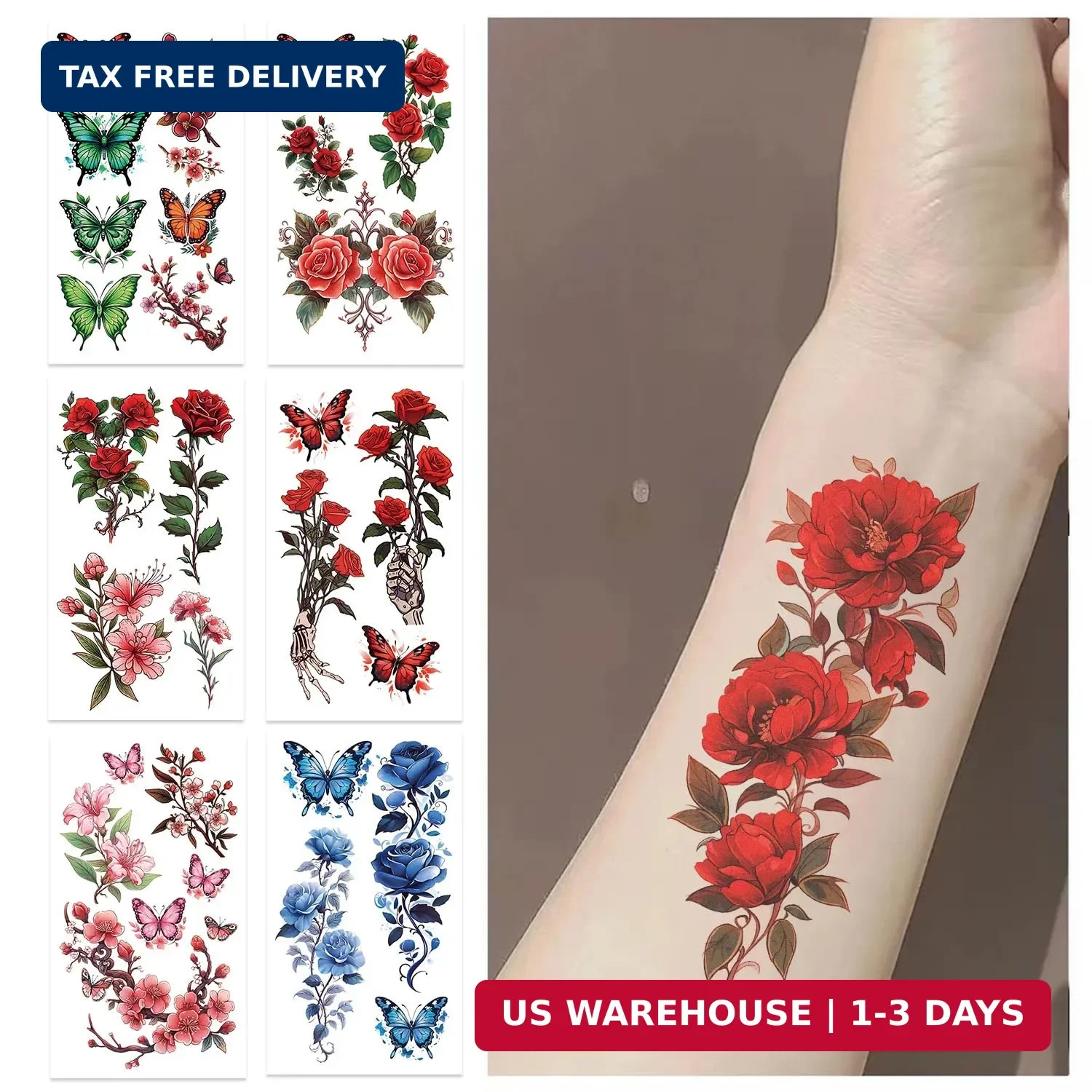 96PCS Flowers Temporary Tattoos Stickers, Roses, Butterflies and Multi-Colored M