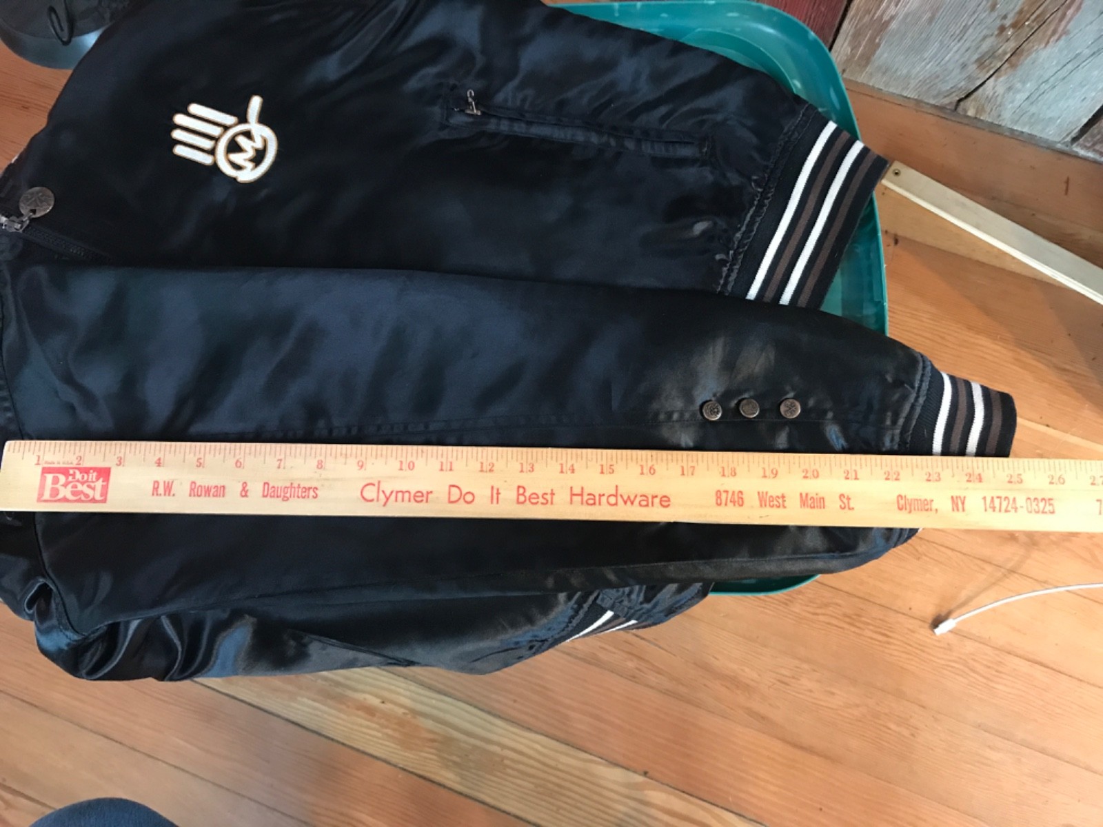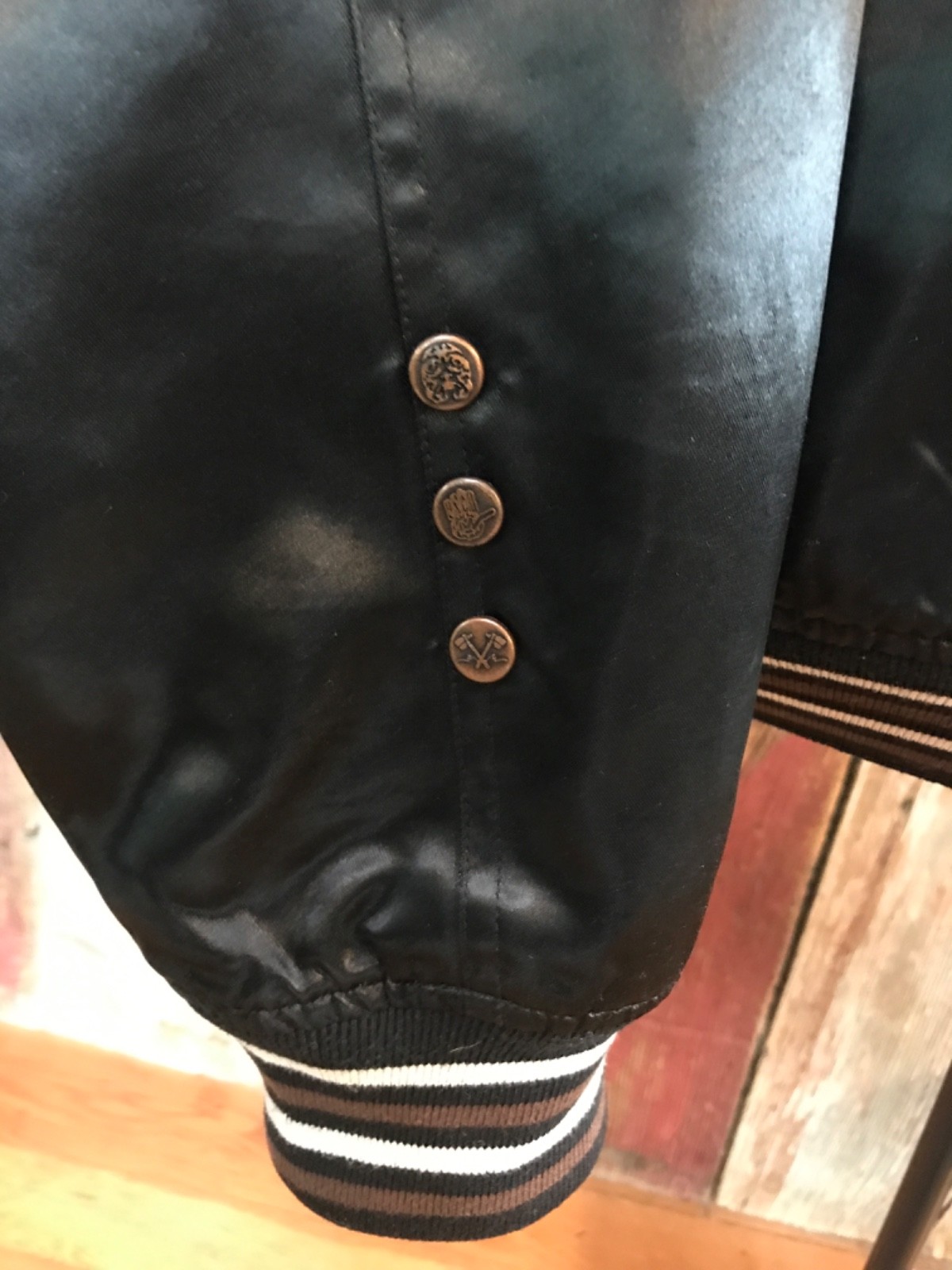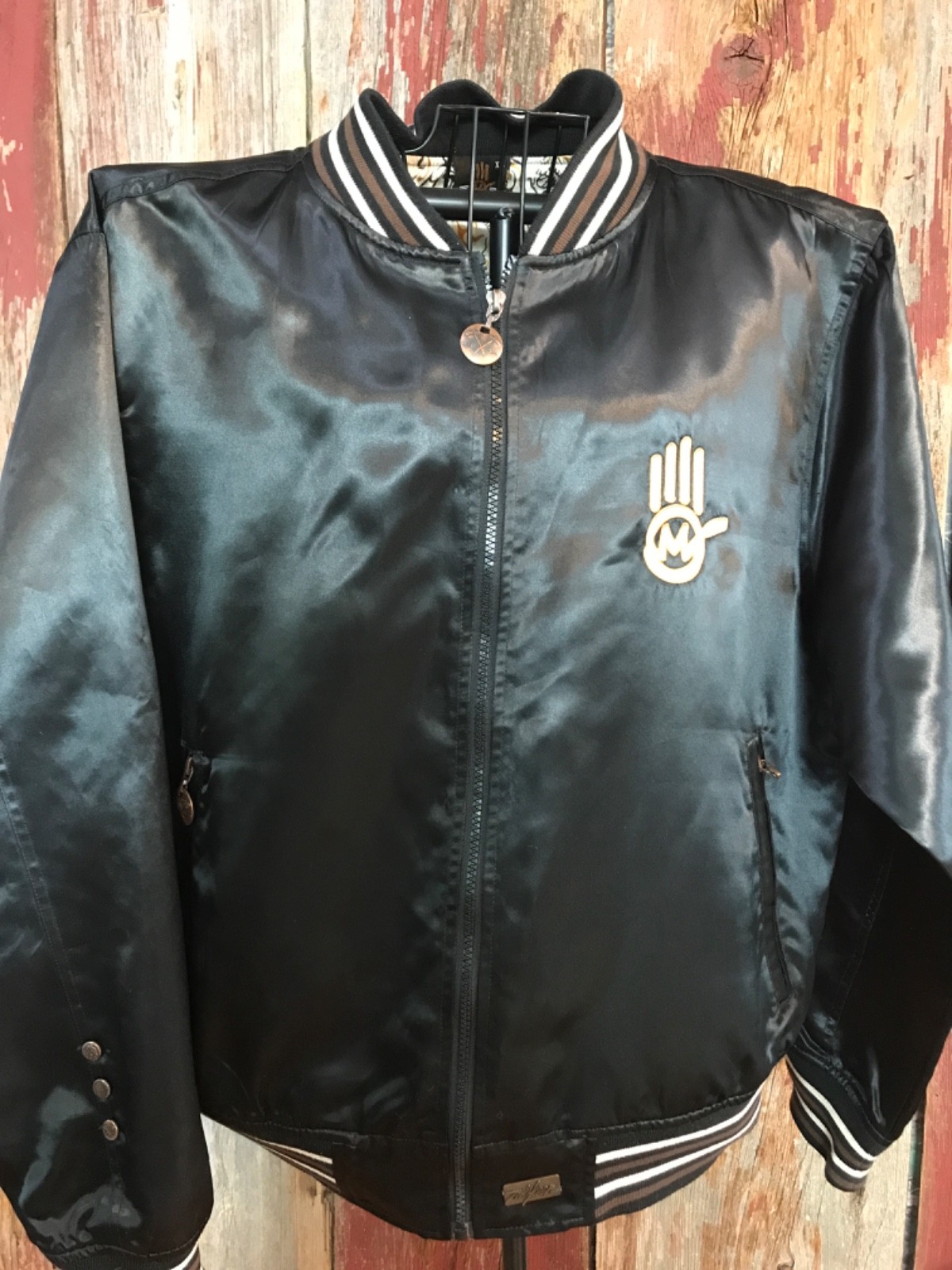 Miskeen Originals embroidered Phoenix black Satin Bomber Jacket. sz XL
