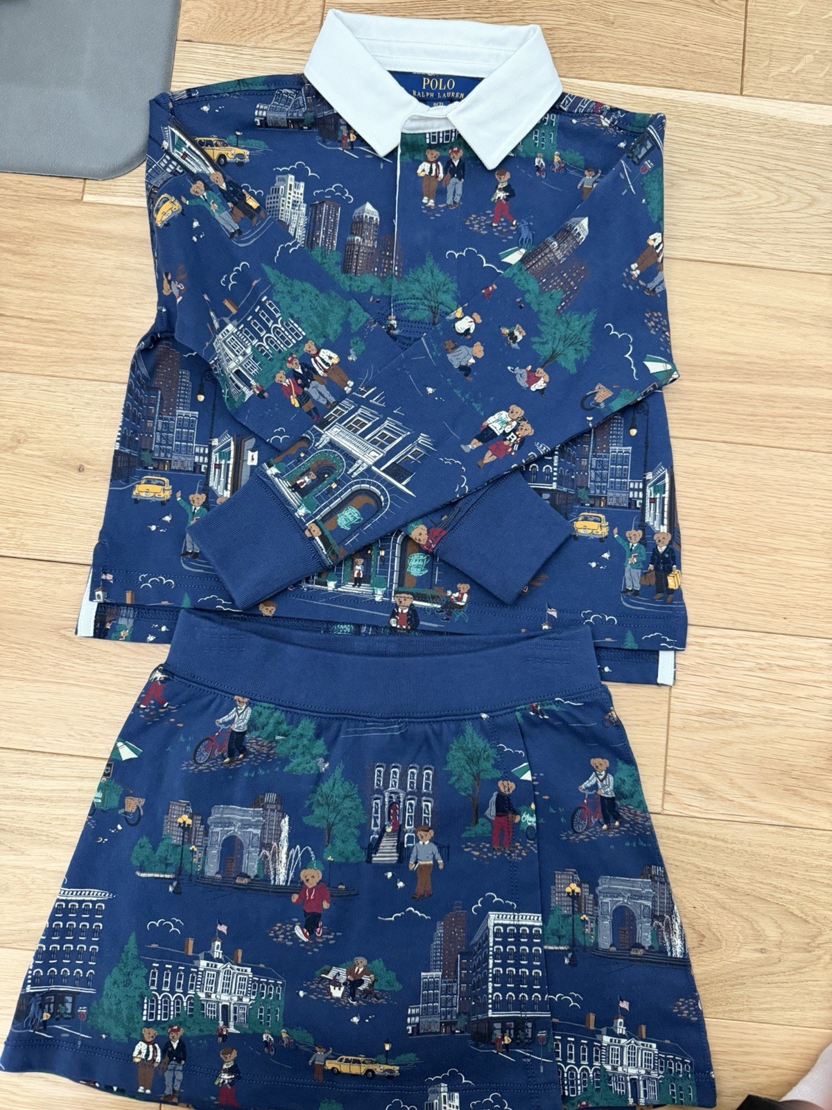 как выглядит Polo Ralph Lauren Girls Boxy-Fit Rugby Shirt and Wrap-Effect Skort 2-Piece Set фото