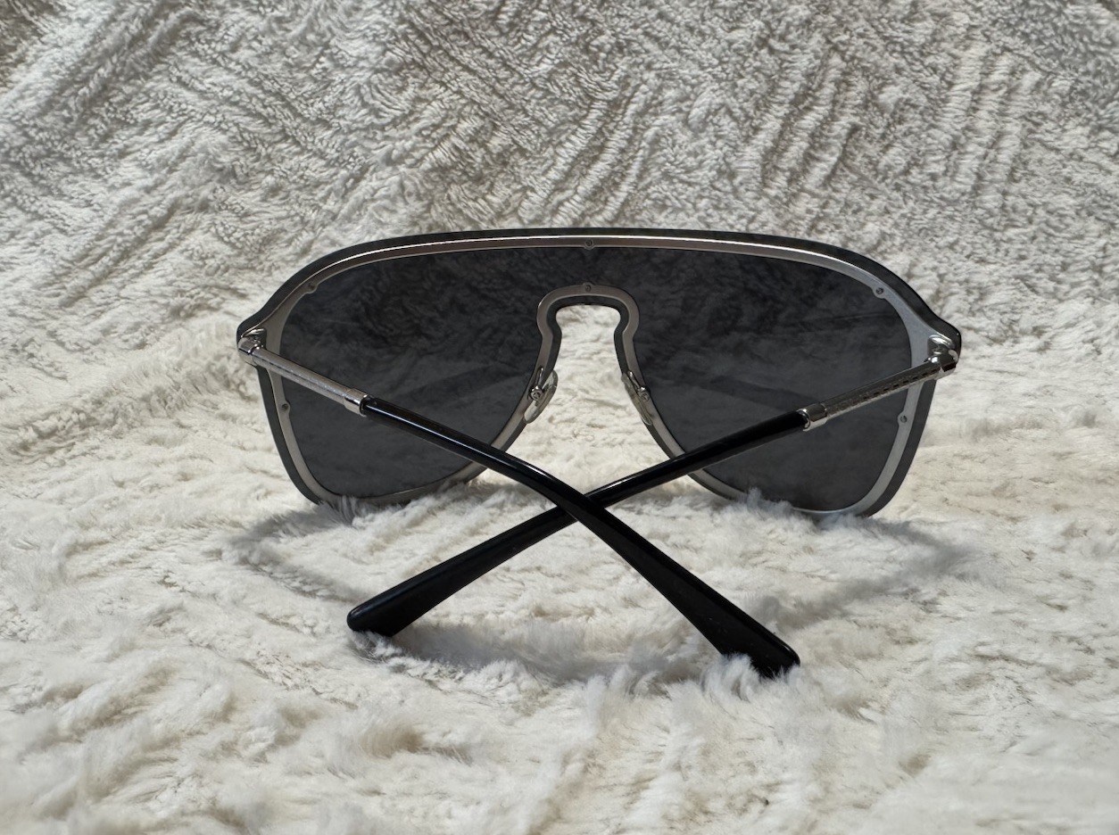 как выглядит Versace VE2180 Shield Oversized Sunglasses Metal Dark Gray, Gold Mirror UV400 фото