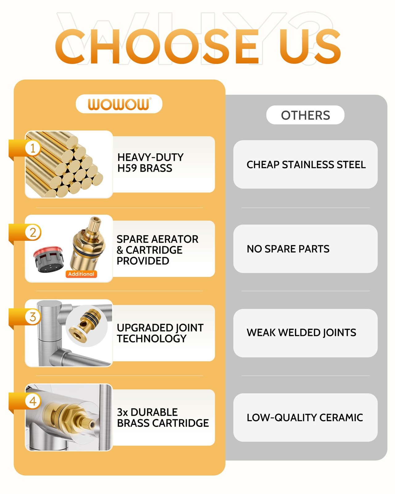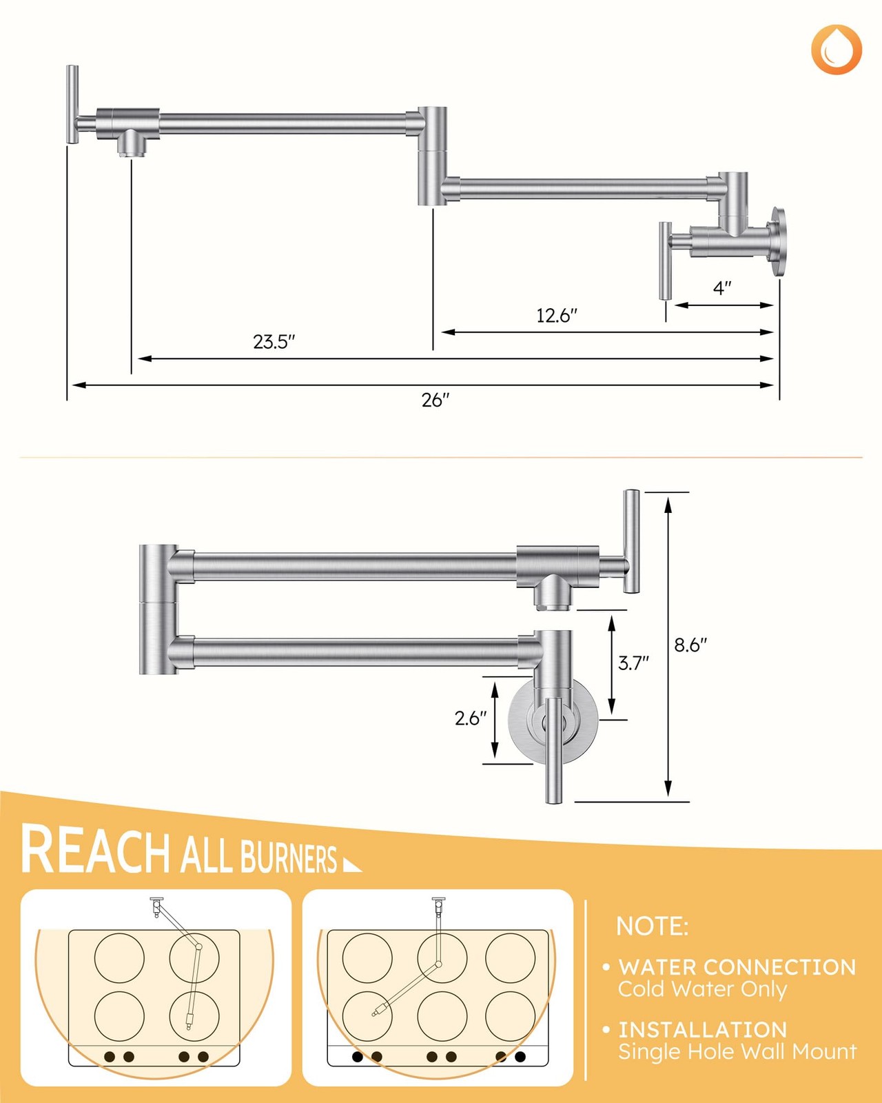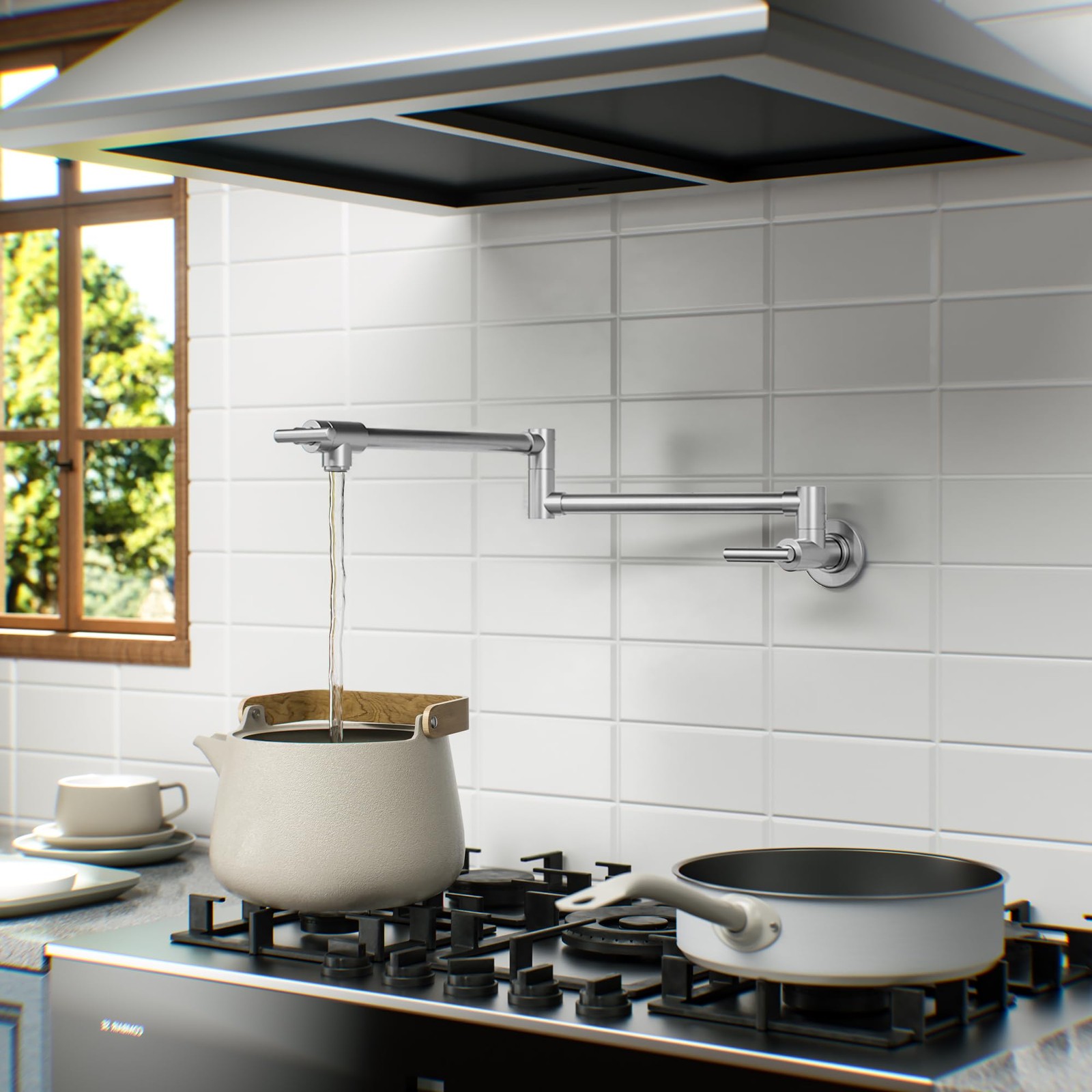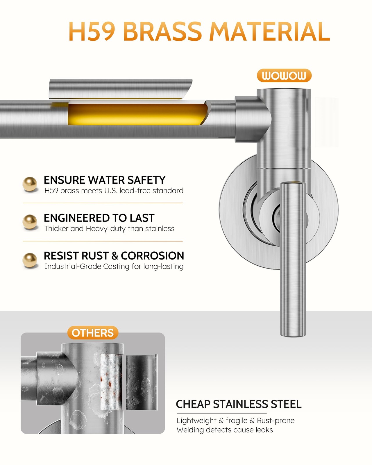 WOWOW Pot Filler Faucet Brushed Nickel, Brass Wall Nickel