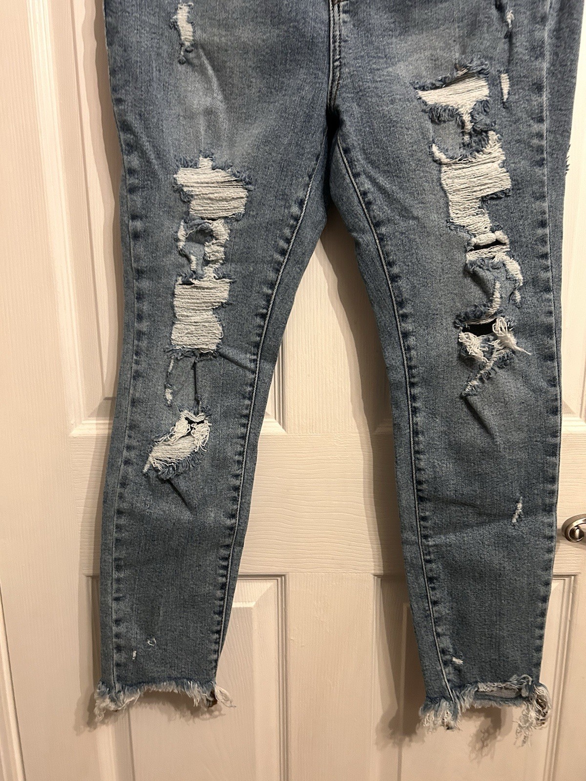 как выглядит Judy Blue Skinny Fit 13/31 Distressed Light Wash Stretch Blue Jean Denim Boho фото