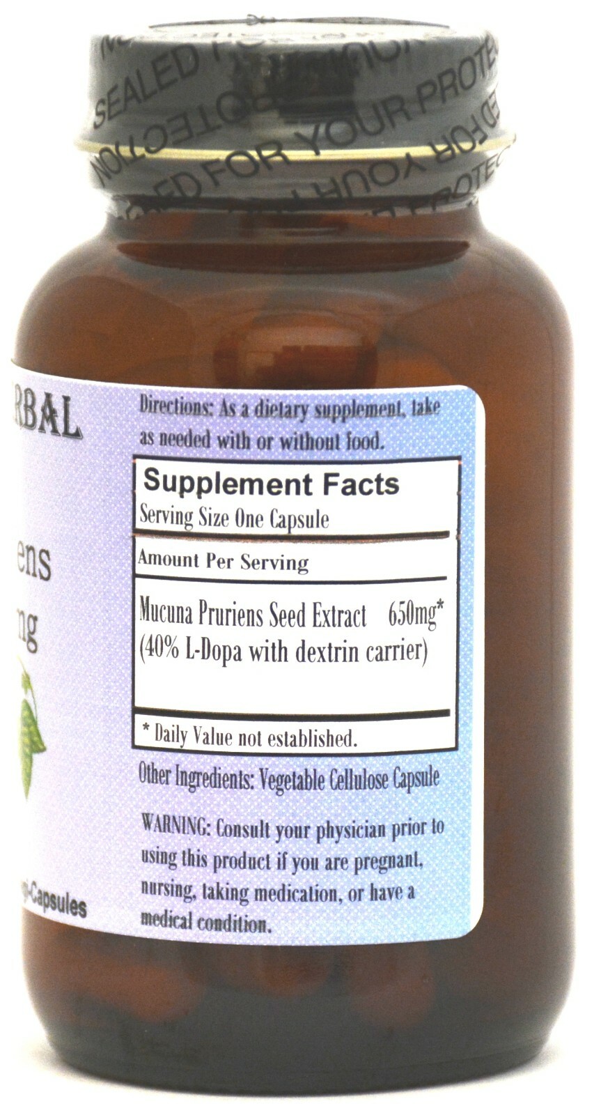 как выглядит MUCUNA PRURIENS White Extract 40 L-Dopa - Stearate Free, Bottled in Glass фото