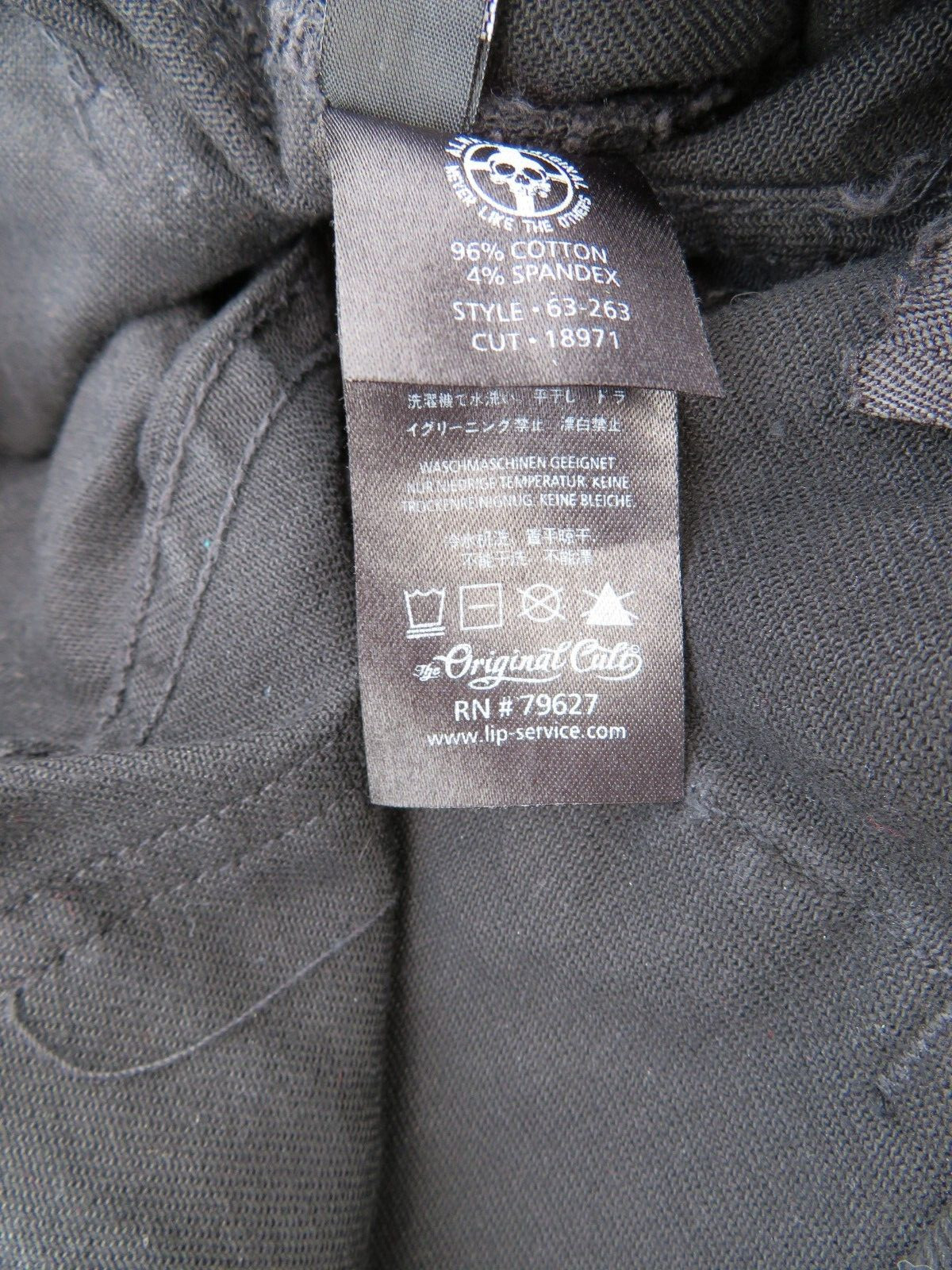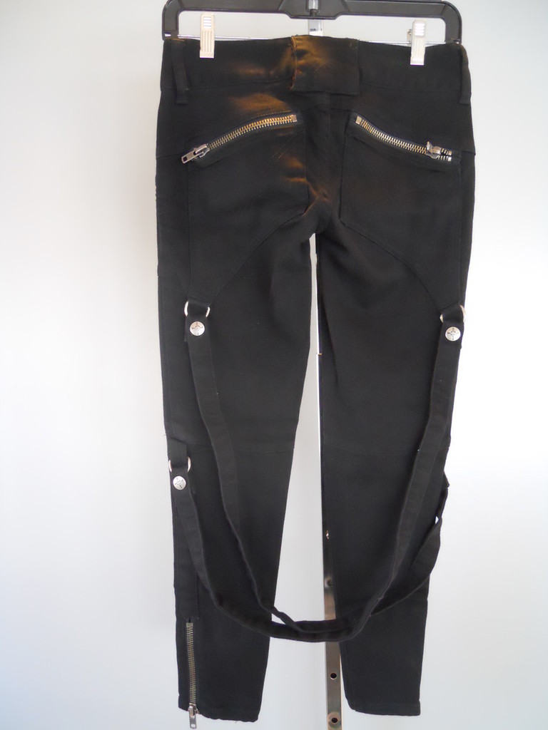 NEW LiP SERViCE BLACK BANDAGE MUMMY STRAPS JEANS TAPERED PUNK SKA PANTS FLOOD 25