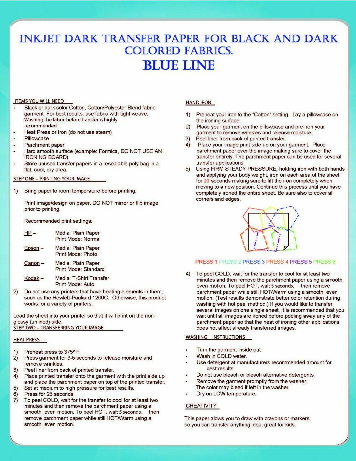 Inkjet Dark heat Transfer Paper Heat Press DIY T-shirt Printing Blue Line