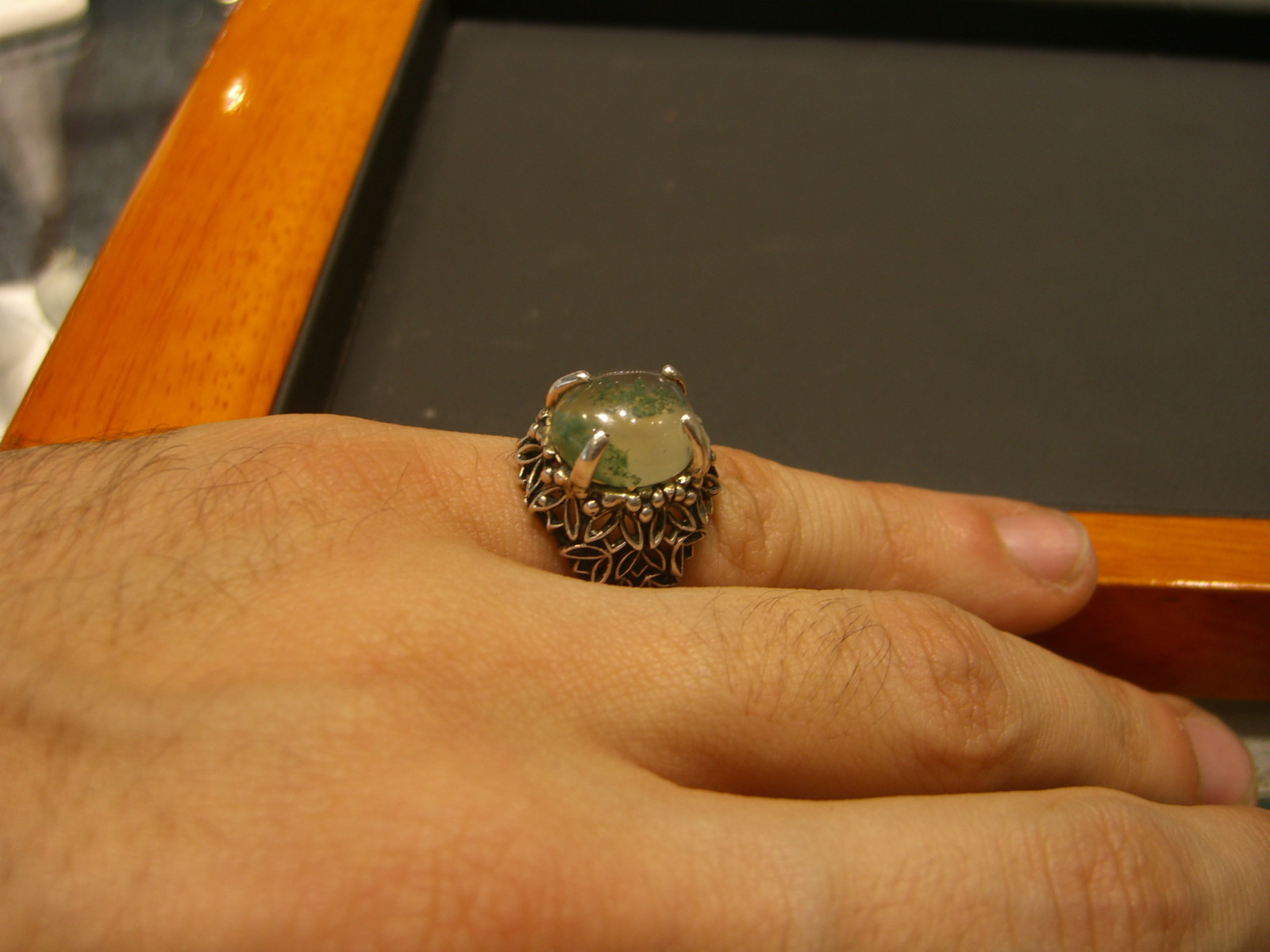 как выглядит WOMENS GREEN/WHITE MOON STONE STERLING SILVER RING HAND MADE 925 NEW WOW фото
