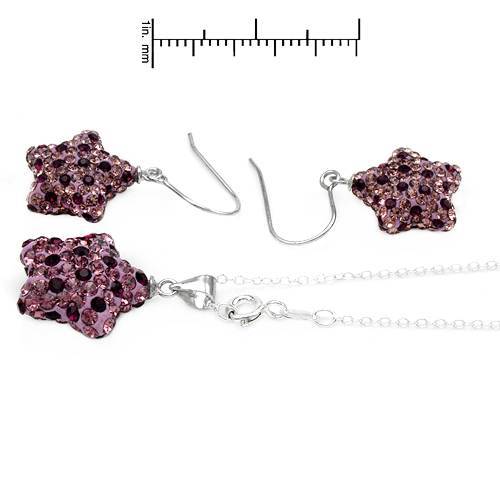 Star Necklace Earrings set W/Genuine Crystal in 925 Sterling silver.