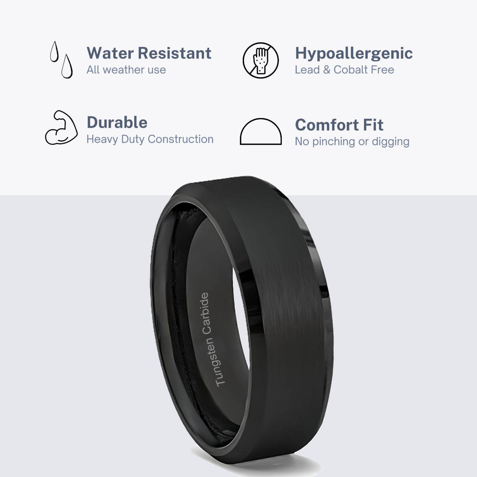 NEW Black Tungsten Carbide Wedding Band Ring Mens Brushed Center Comfort Fit