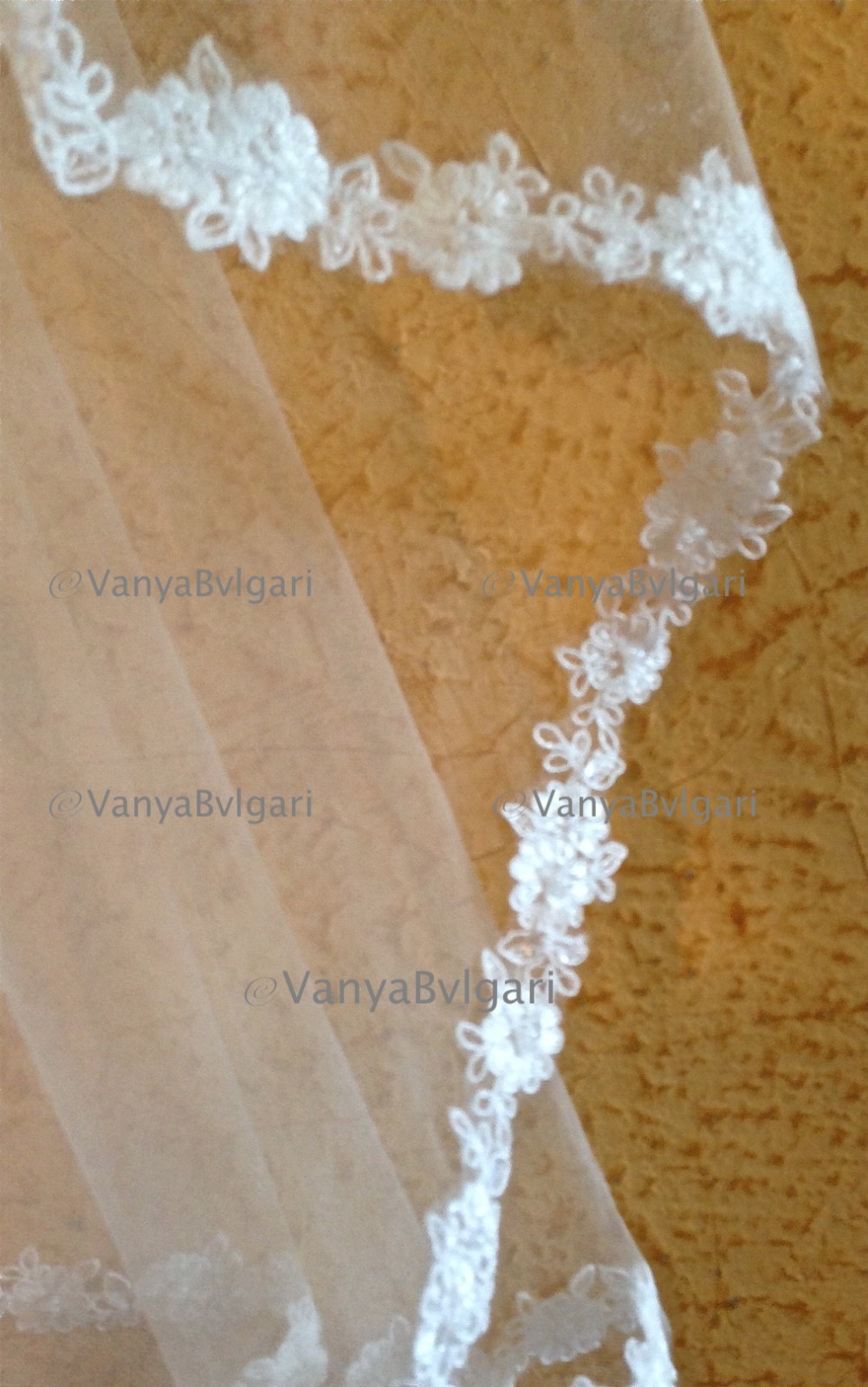 как выглядит BRIDAL LACE VEIL IN TWO LAYERS WITH BLUSHER FINGERTIP, WEDDING BEADED VEIL WHITE фото