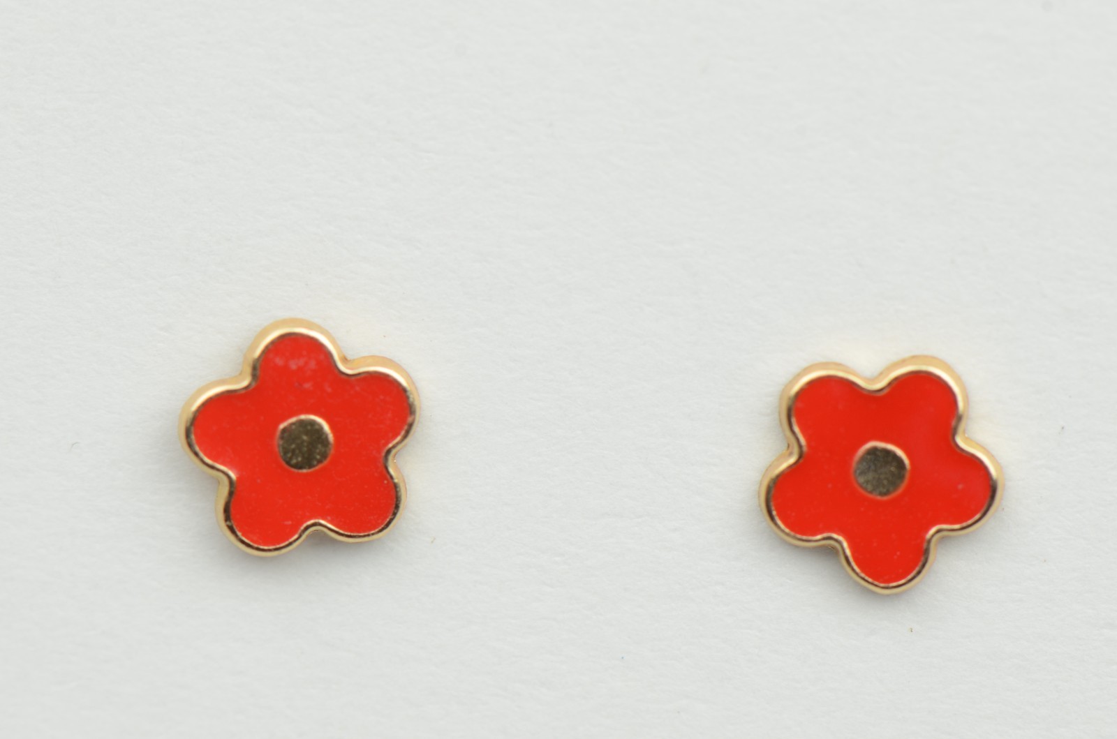 14k Yellow Gold Enamel Flower Screw Back Baby earrings