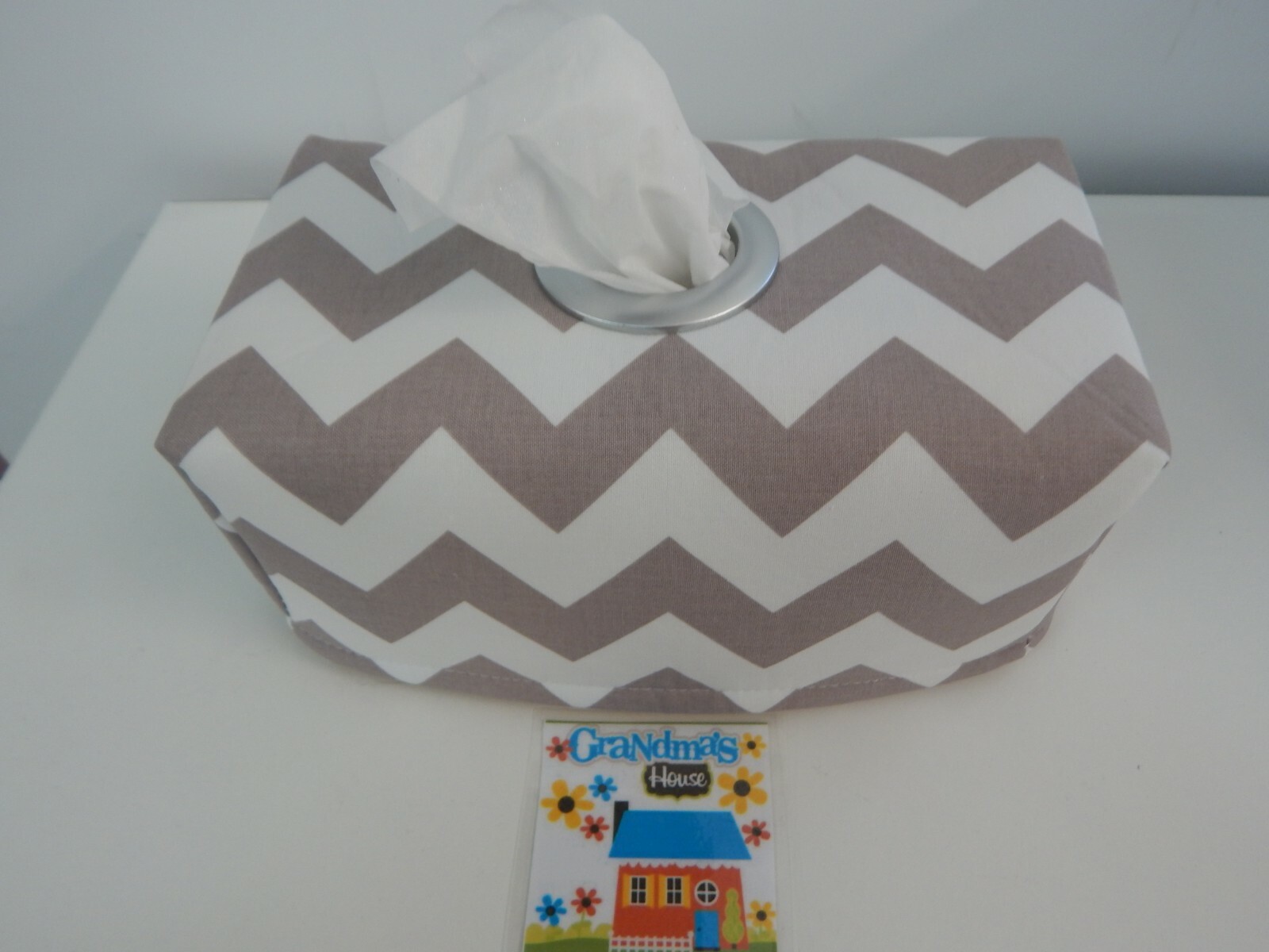 Tissue Box Cover Grey Chevron With Circle Opening -Lovely Gift Idea Nursery Home