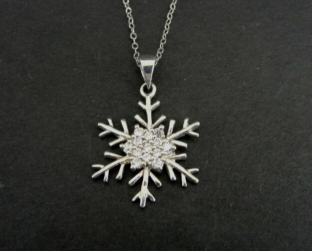 Necklace Silver Snowflake Design with Cubic Zirconia Sterling 925 Pendant Chain