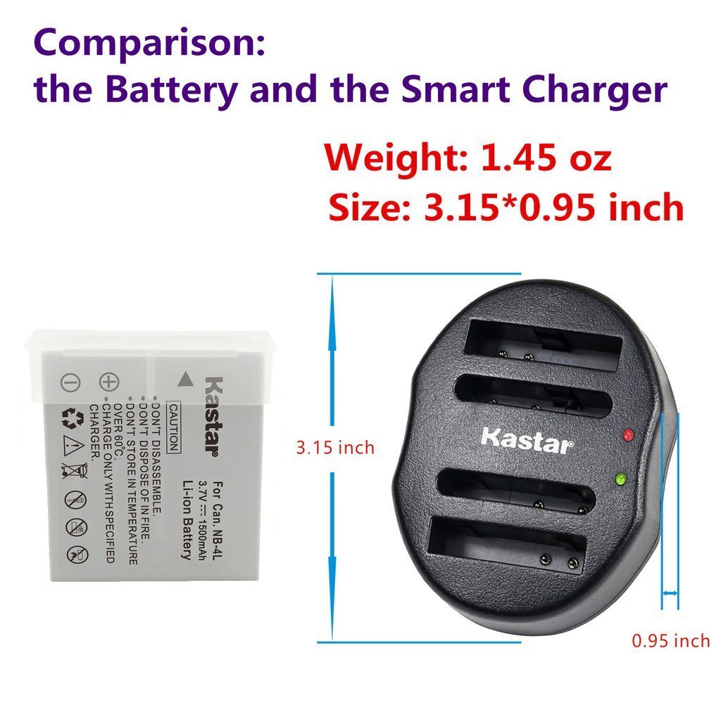 NB-4L Battery Dual USB Charger for Canon PowerShot SD1000, SD1100 IS, SD1400 IS