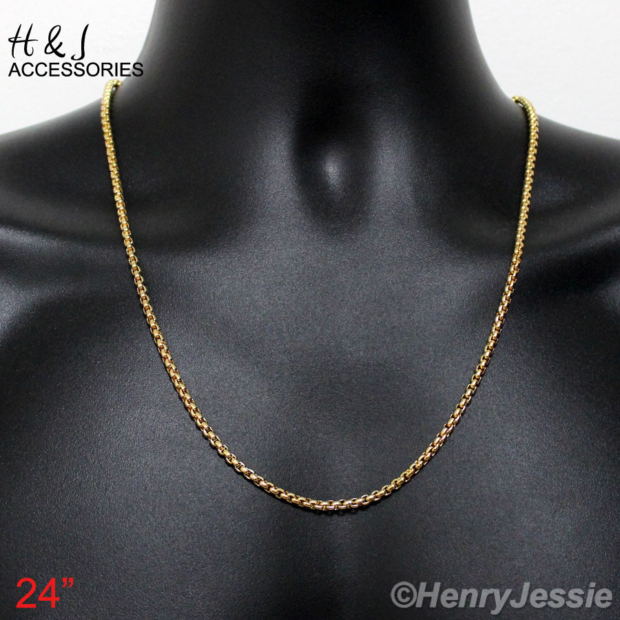как выглядит 18-36"MEN Stainless Steel 3mm Gold Plated Box Link Chain Black Onyx Pendant GP98 фото