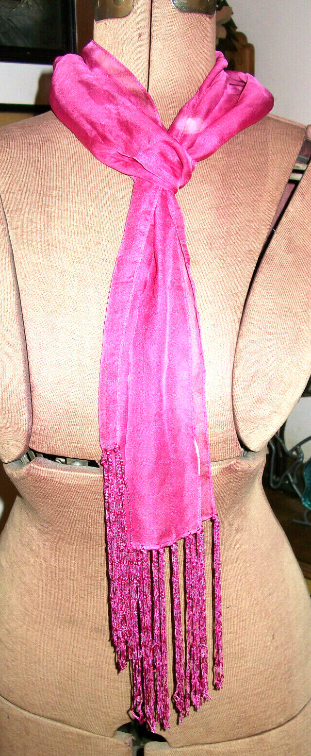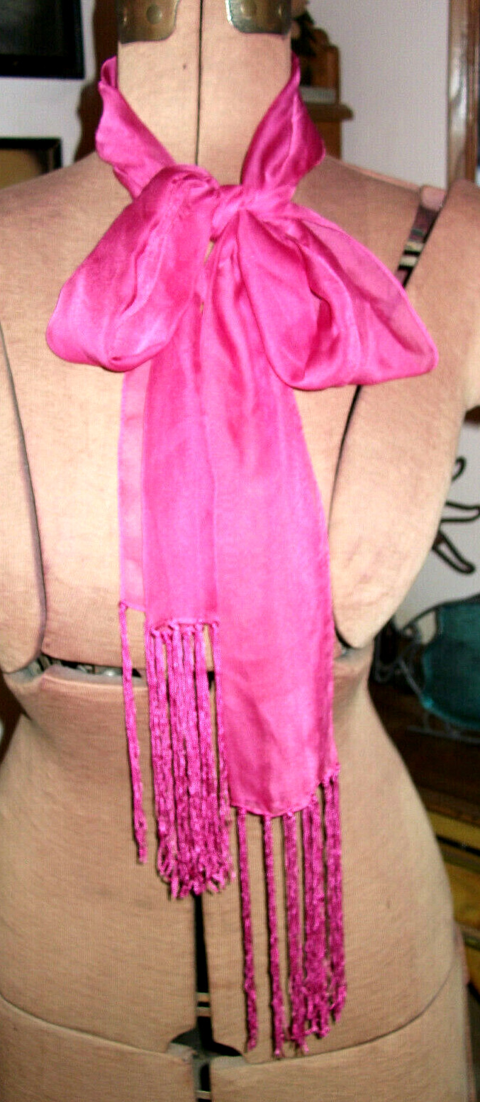 NEW WITH DEFECTS Solid Raspberry Long Lightweight SHEER SPRING SCARF Fringe Ends