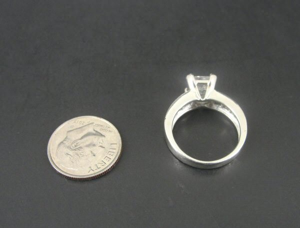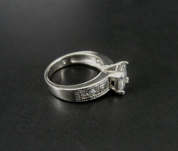 Ring Silver Square Solitaire accent Stones Cubic Zirconia Sterling 925 Size 5