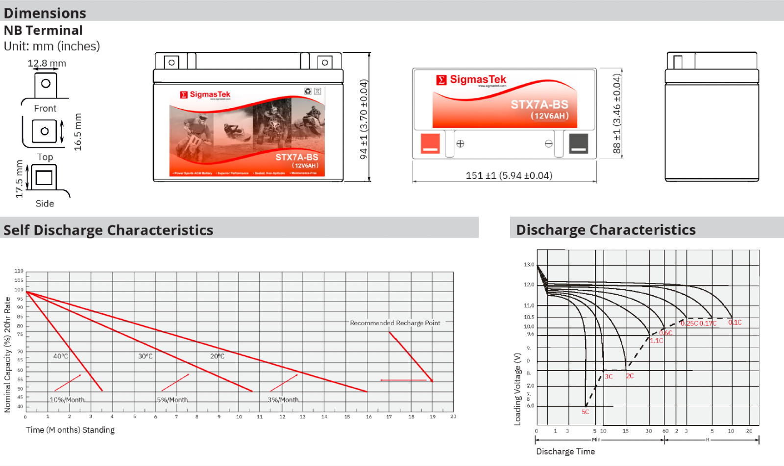 • Yuasa YTX7A-BS Battery - Replacement Moto Battery by SigmasTek