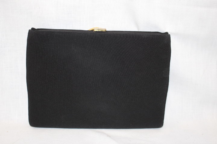 Vintage HL-HARRY LEVINE Black Clutch W/Gold Tone Swirl Lock Coin Purse-B112