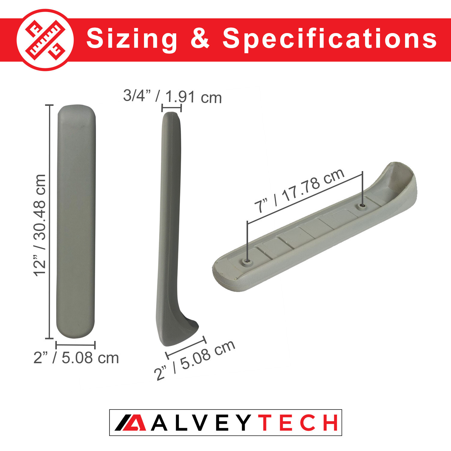 Gray Solid Rubber Armrest Pad for Pride Mobility Electric Scooter, Power Chair