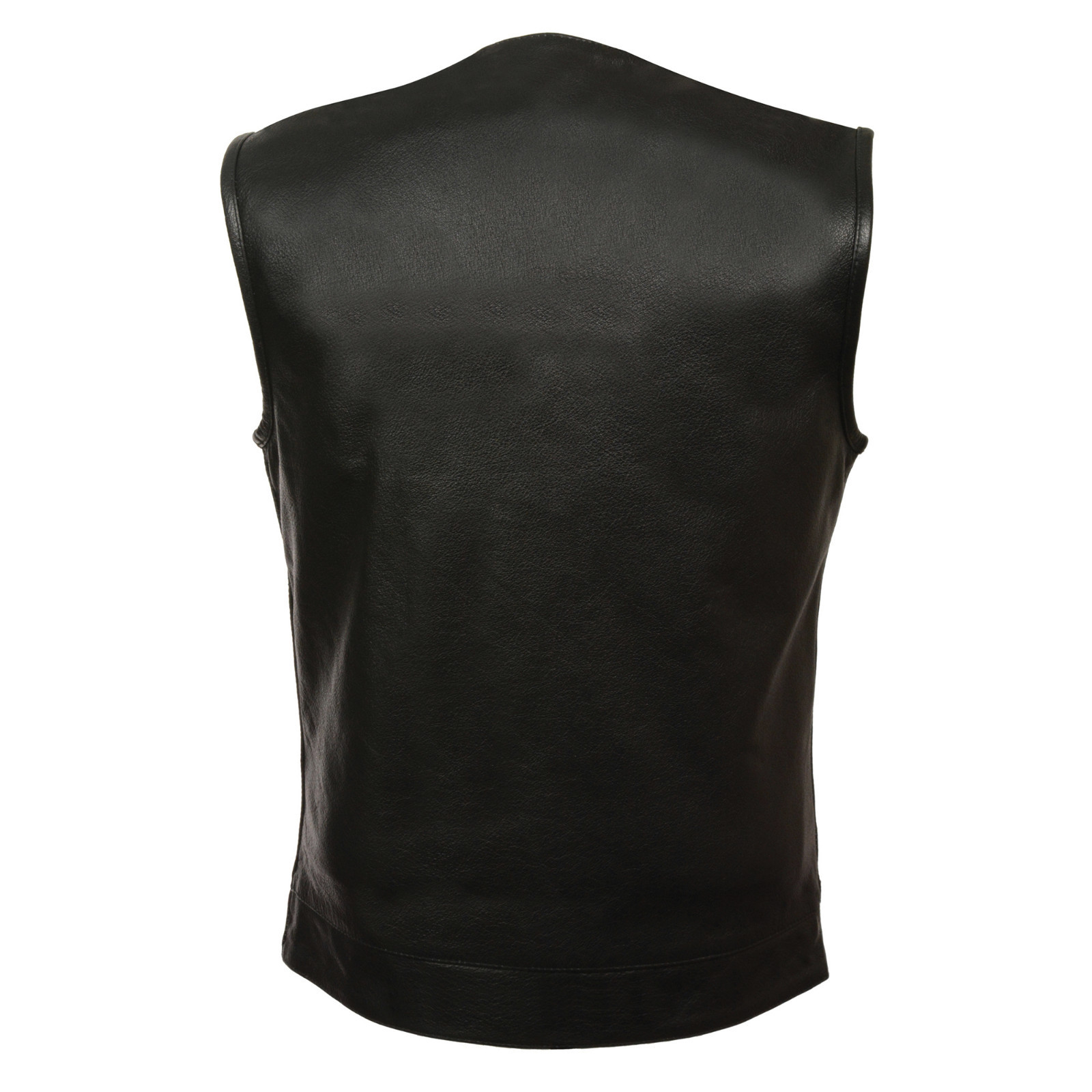 SOA Men's Collarless Leather Vest w/ Two Gun Pockets Snap/Zipper Front LKM3711