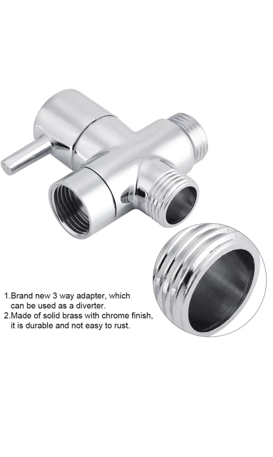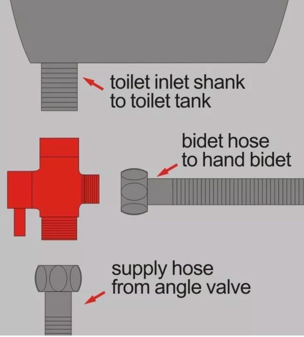 7/8 Inch T-Adapter 3 Way Connector Brass Shower Diverter With Valve For Toilet