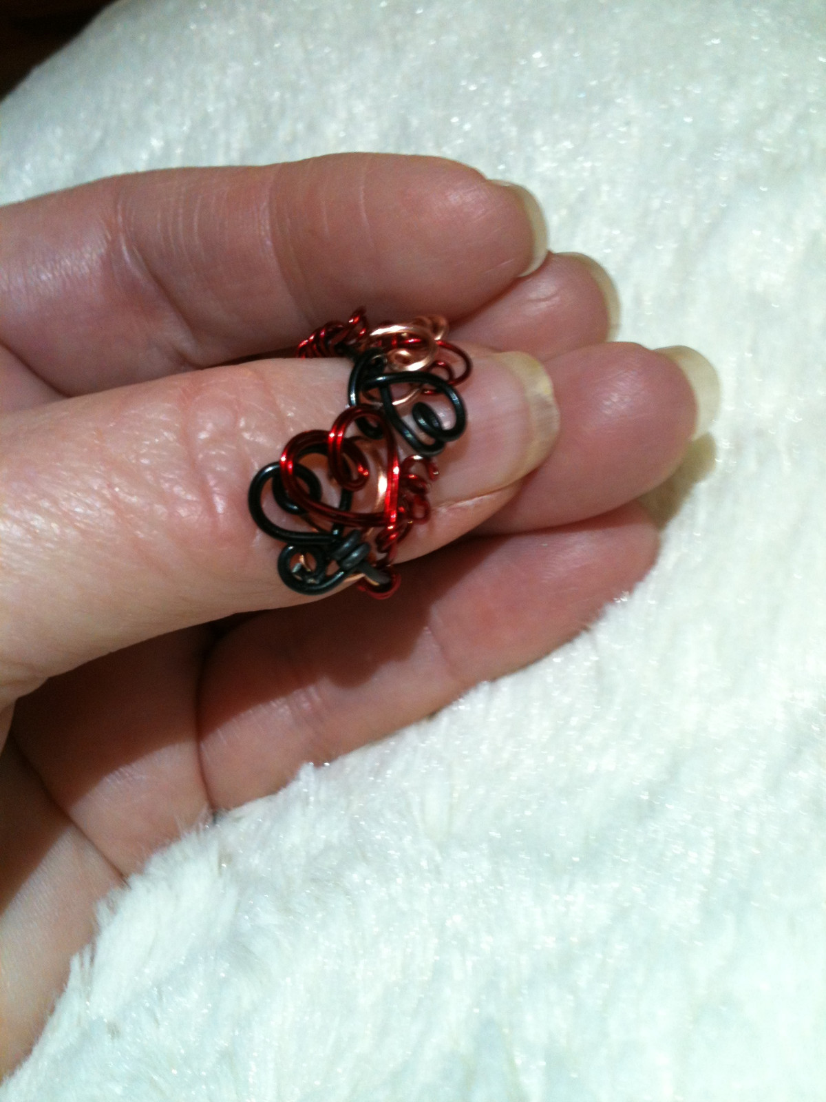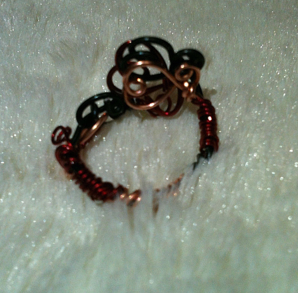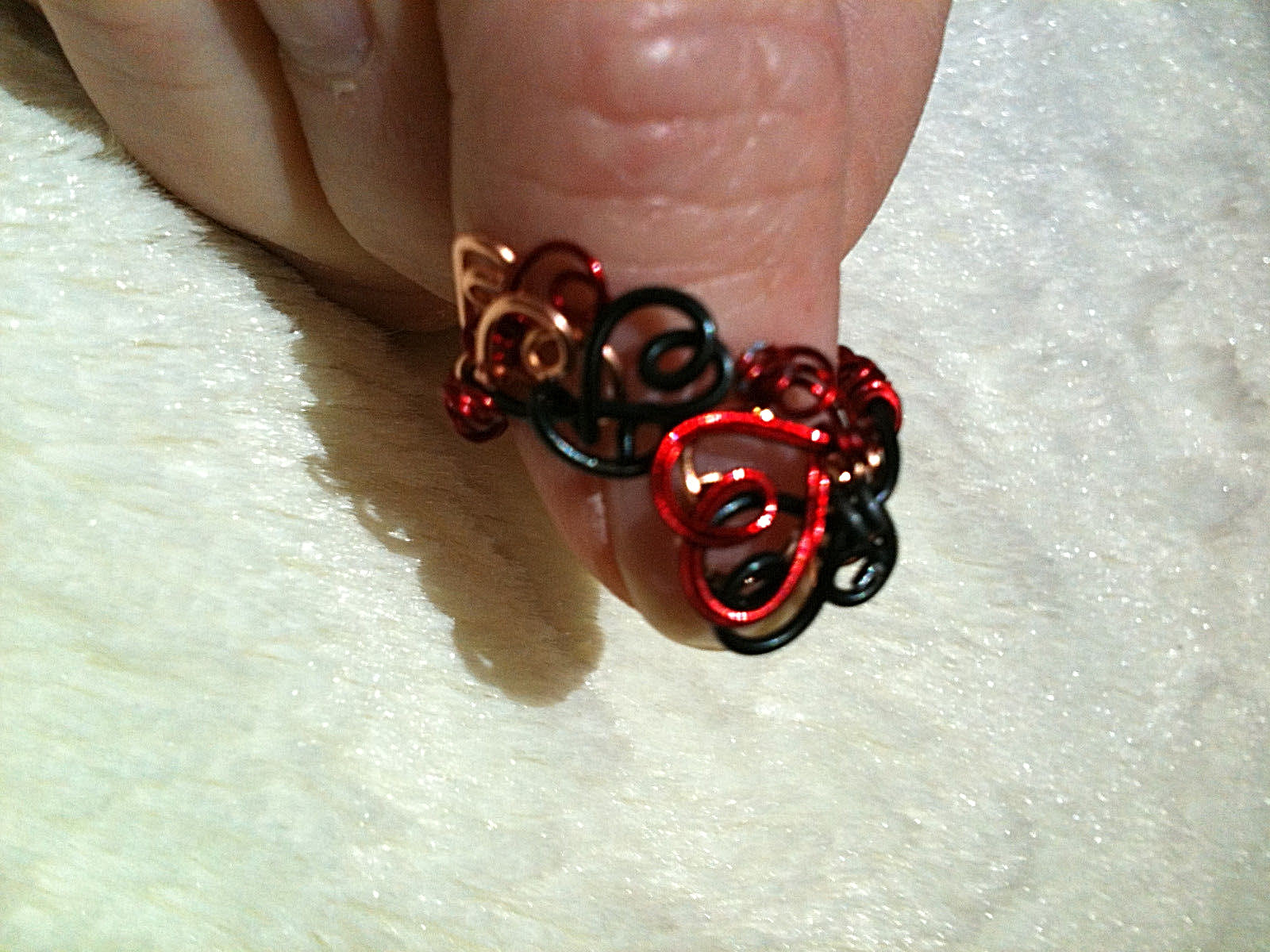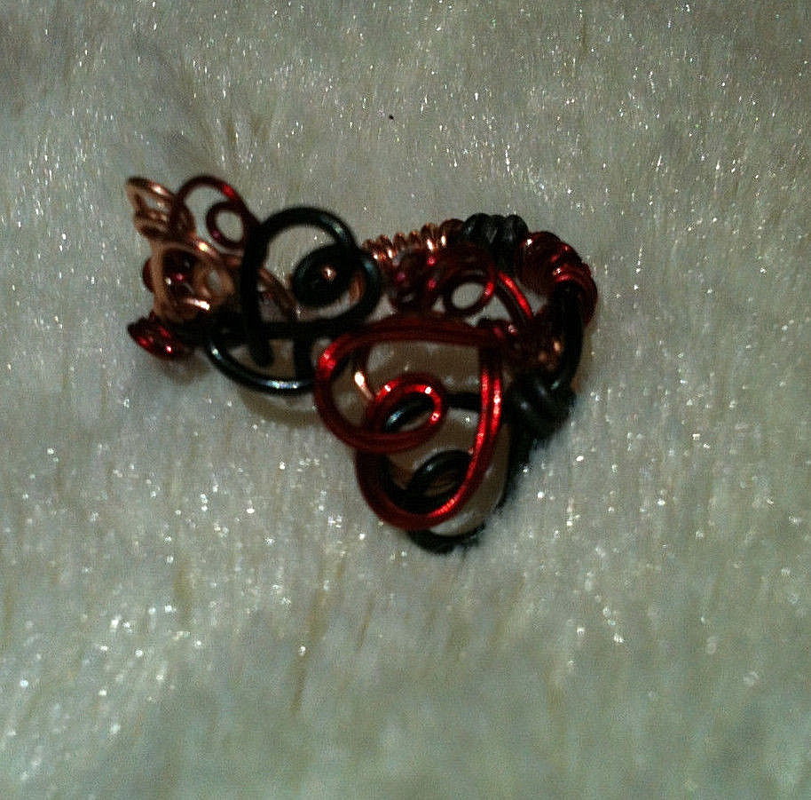 Fun Red, Black hearts inspired by Harley Quinn Wire Wrap adjustable Ring