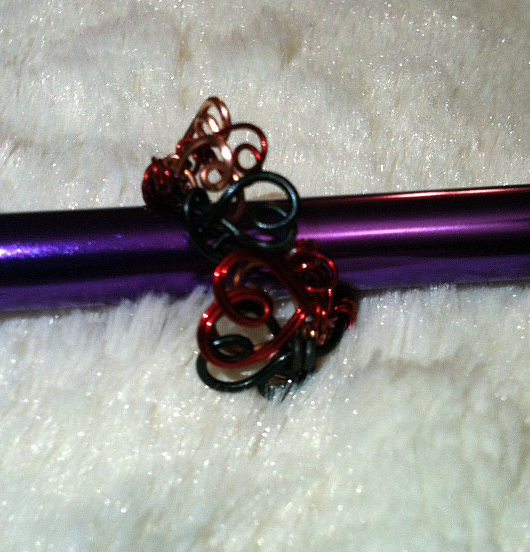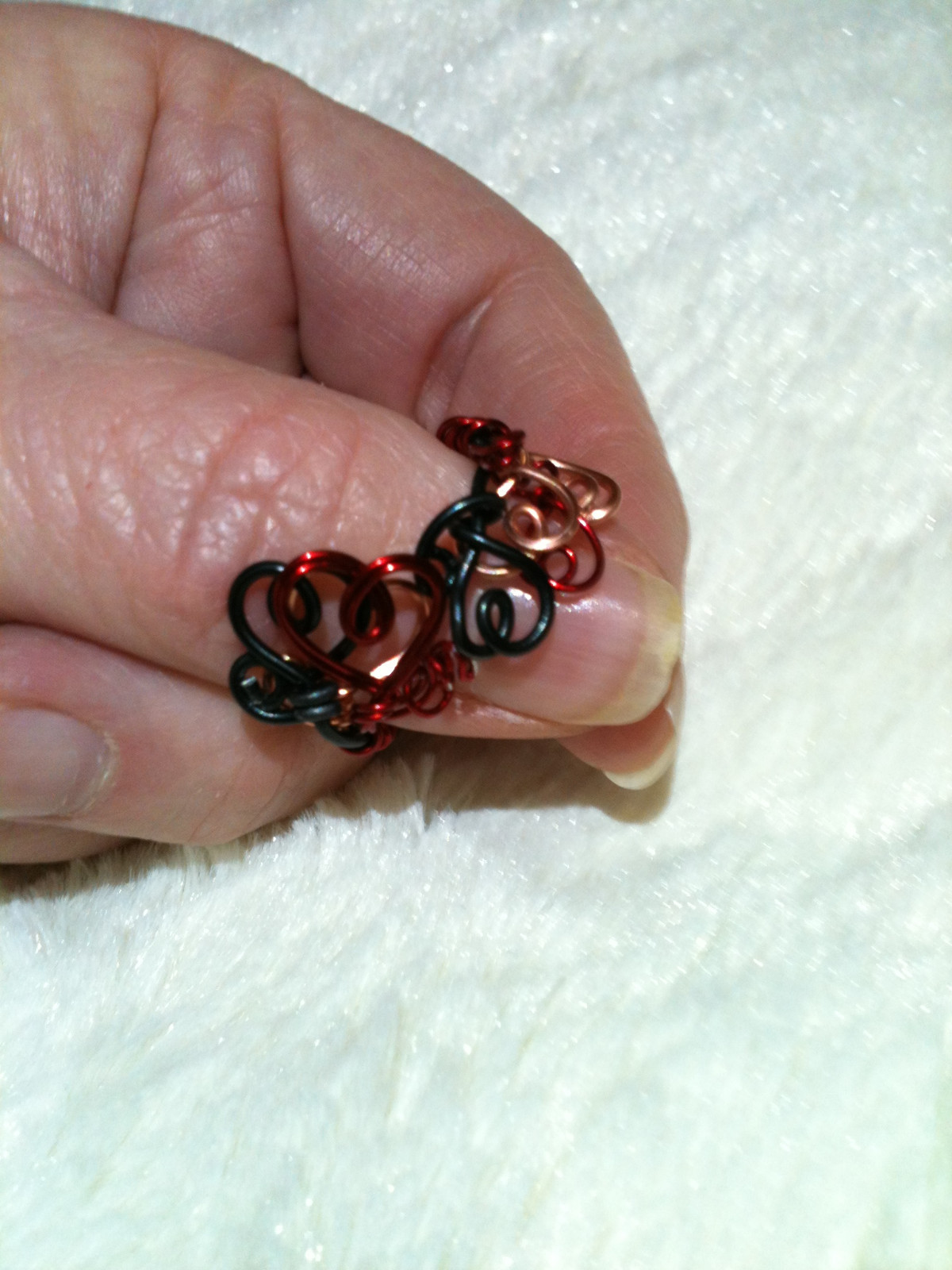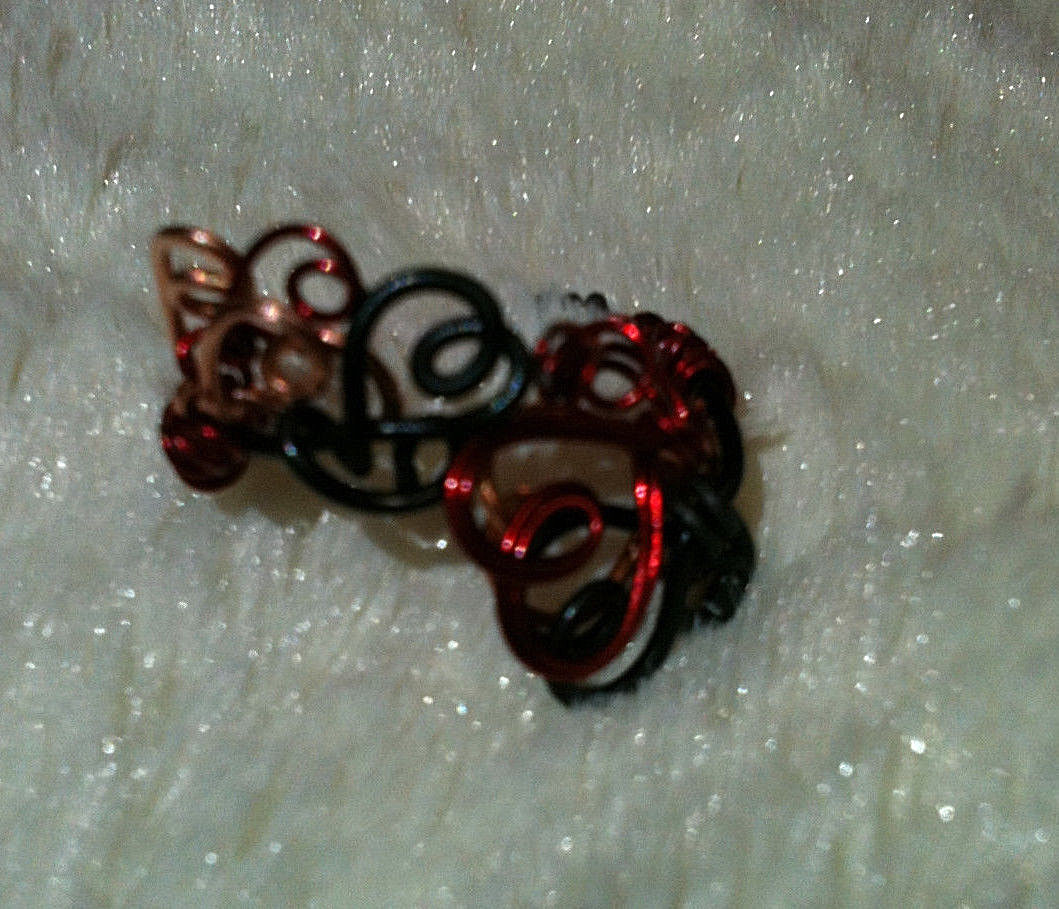 Fun Red, Black hearts inspired by Harley Quinn Wire Wrap adjustable Ring