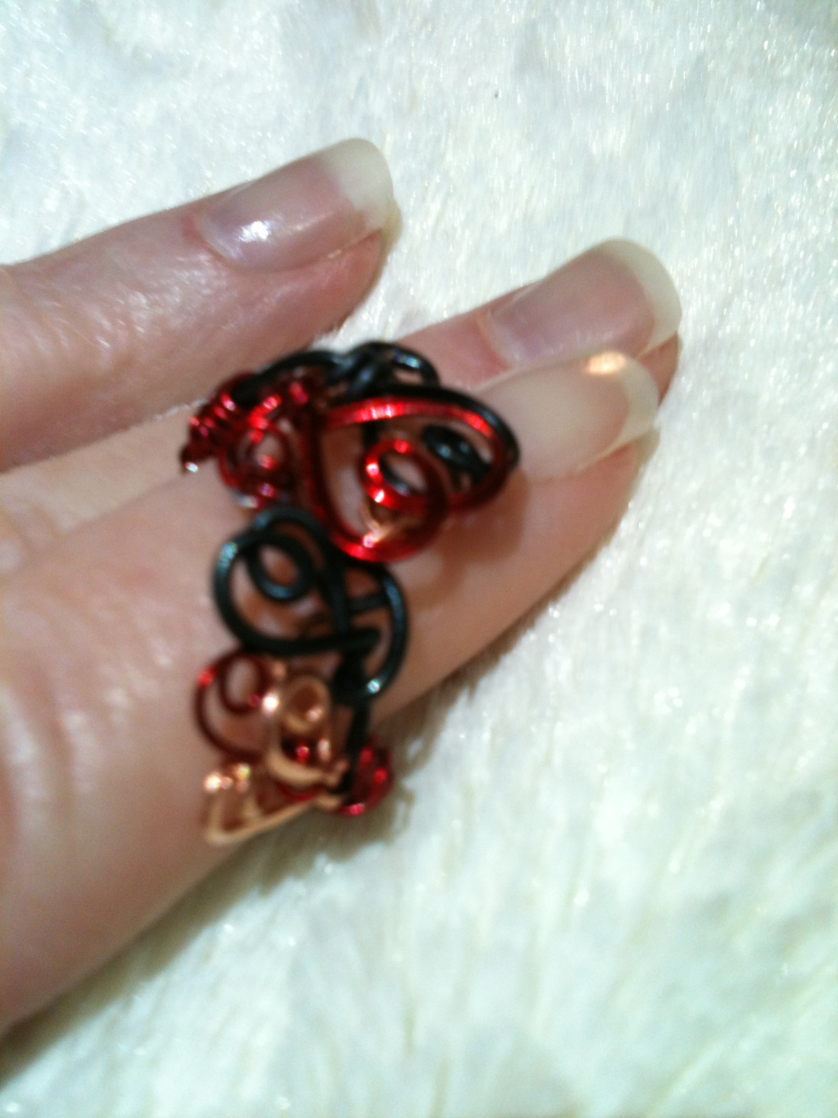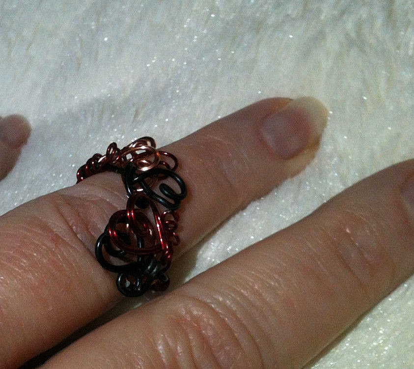 как выглядит Fun Red, Black hearts inspired by Harley Quinn Wire Wrap adjustable Ring фото
