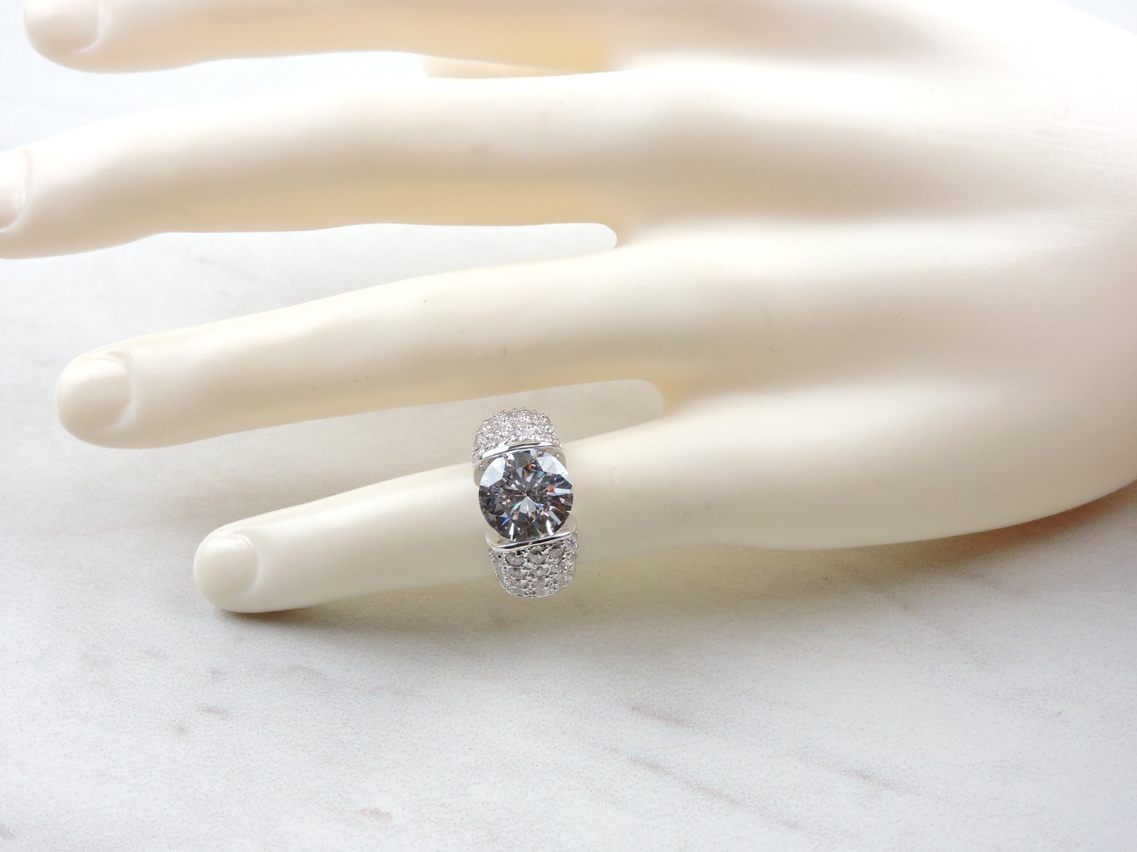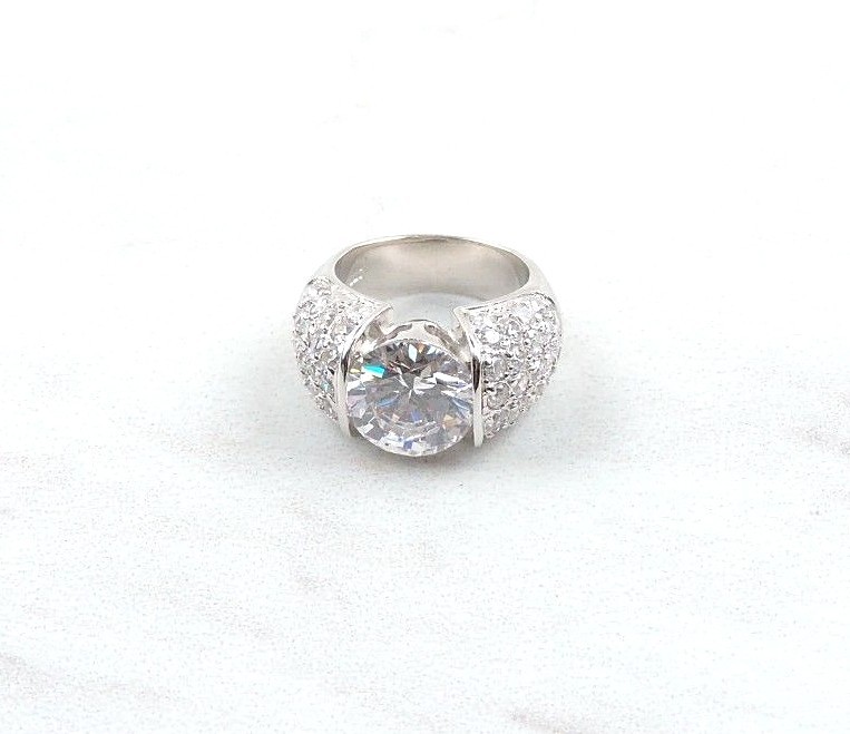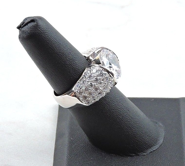 как выглядит Sterling Silver 5 ct Round Cut Center Cubic Zirconia Ring With 1.92 cttw Accent фото