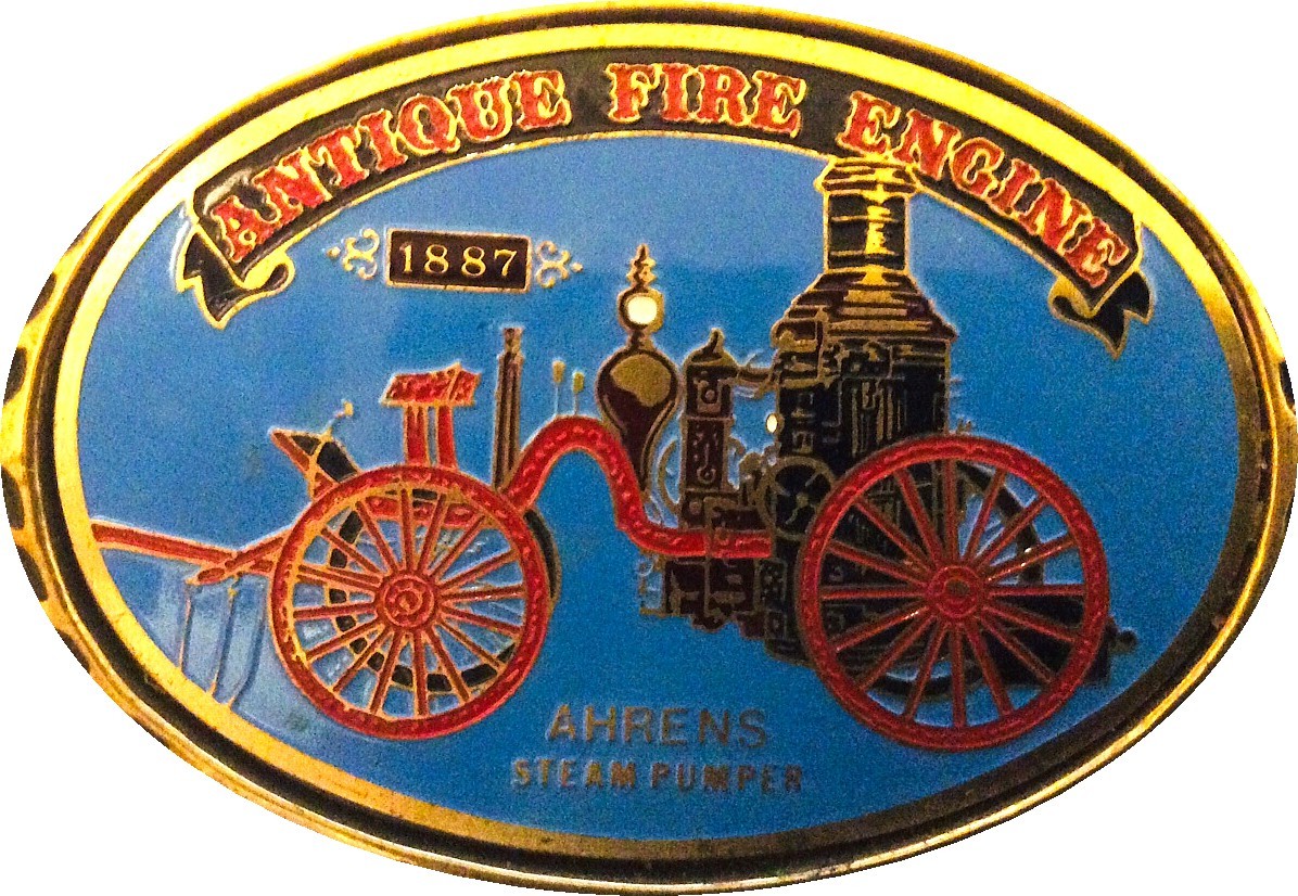 Fireman's Brass Belt Buckle Antique Fire Engine 1887 Ahren's Steam Pumper
