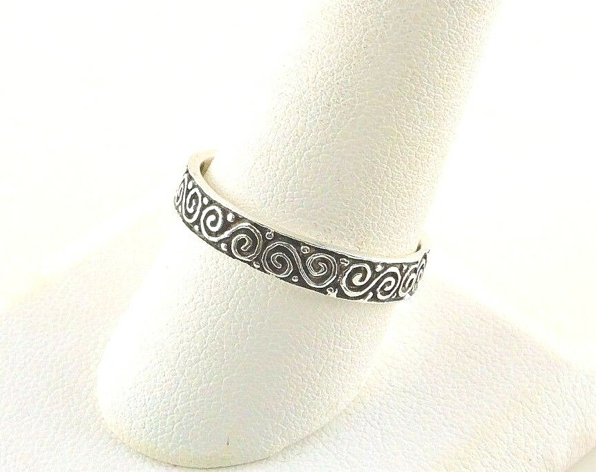 Sterling Silver 4 mm Textured Swirl Band Ring - Free Gift Packaging
