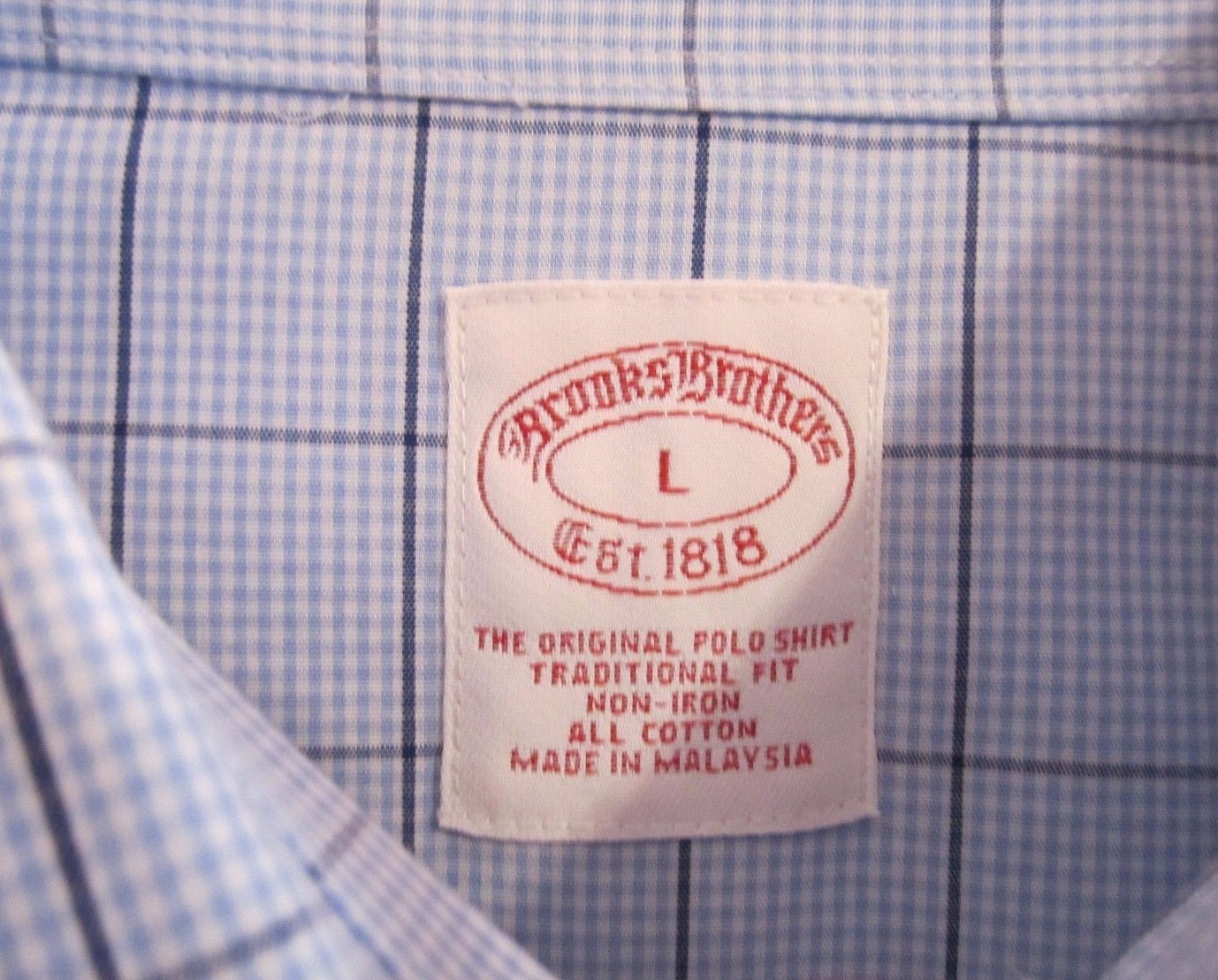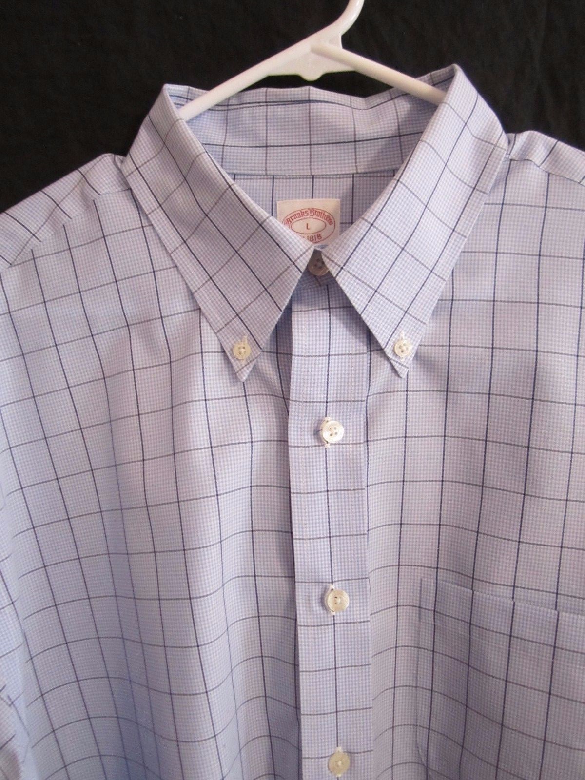 Brooks Brothers Original Polo Men's LARGE Blue Plaid Non Iron Cotton Dress Shirt