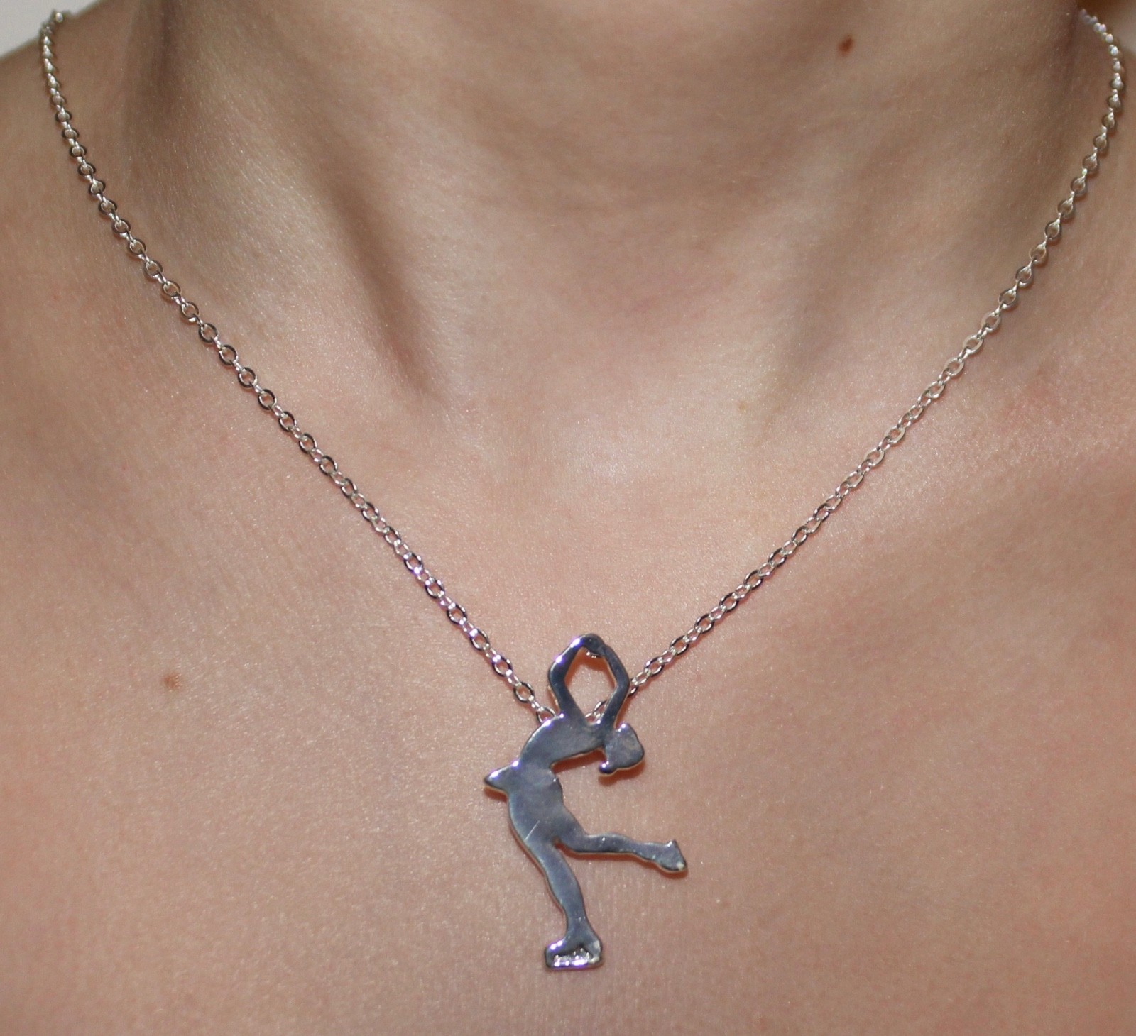 Ice Skating Layback Pendant Necklace and keychain, Gift for Figure Skater Silver