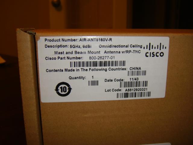 Cisco Aironet 5GHz 6dBi Omni Antenna AIR-ANT5160V-R RP-TNC New Sealed