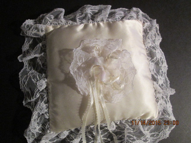 Ring Bearer Pillow With Doves and lace Hand Made Off White