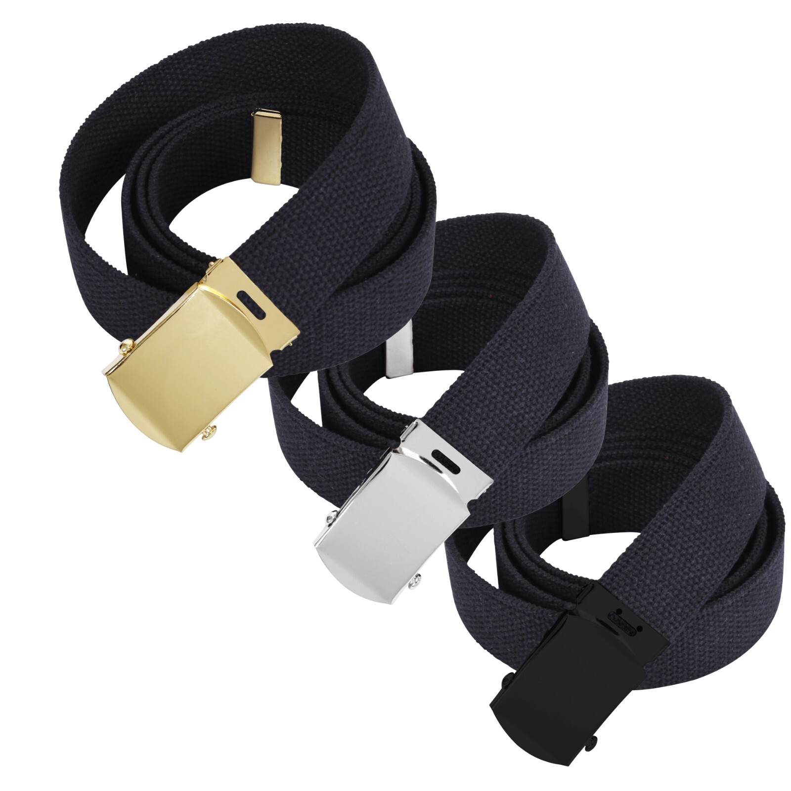 как выглядит 54" Black Army Web Belt 3 Pack - Includes Black Chrome Gold Buckles Tips фото
