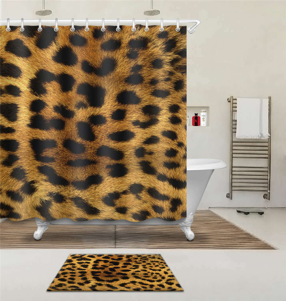 как выглядит Leopard Split Waterproof Bathroom Polyester Shower Curtain Liner Water Resistant фото