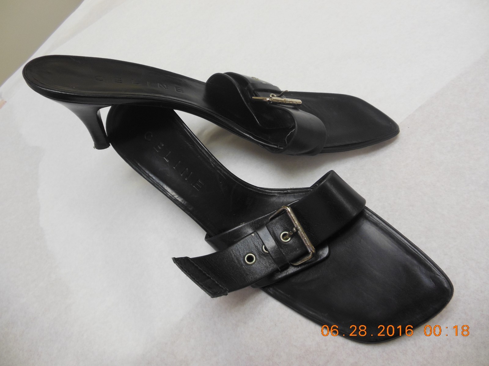 как выглядит "Celine" fine Italian black leather slides size 40 B фото