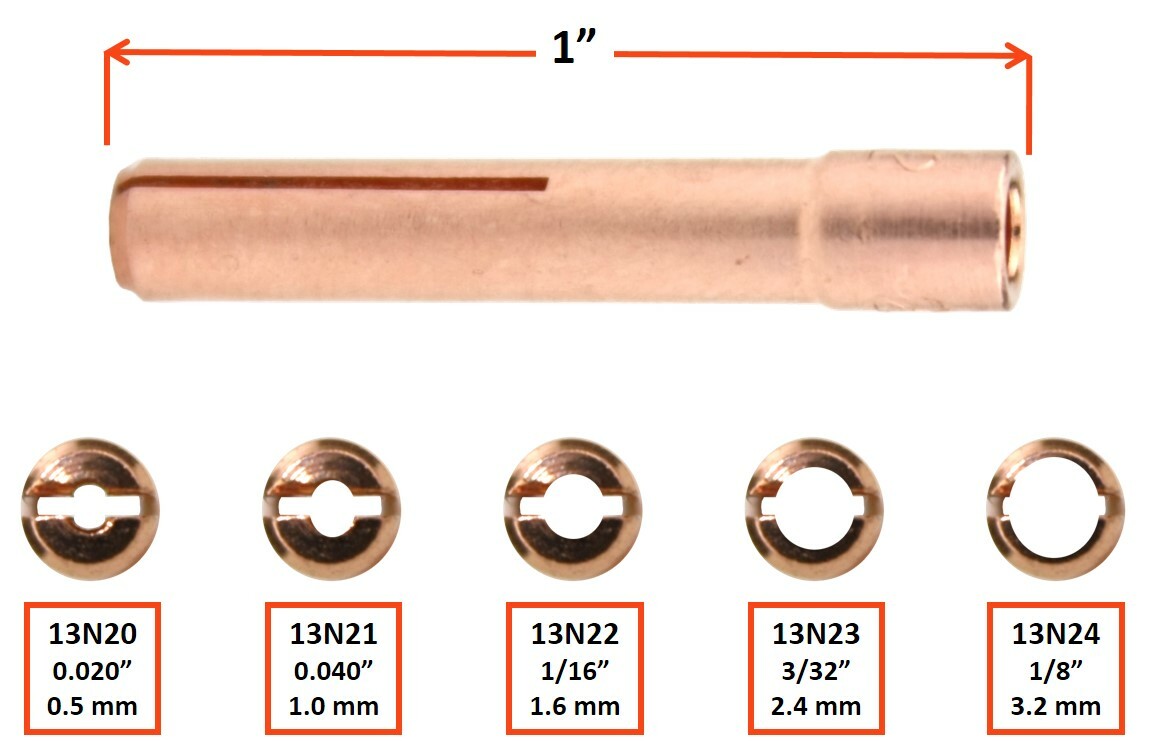 Collet for TIG Welding Torches Series 9/20/25 with Standard and Gas Lens Set-Up