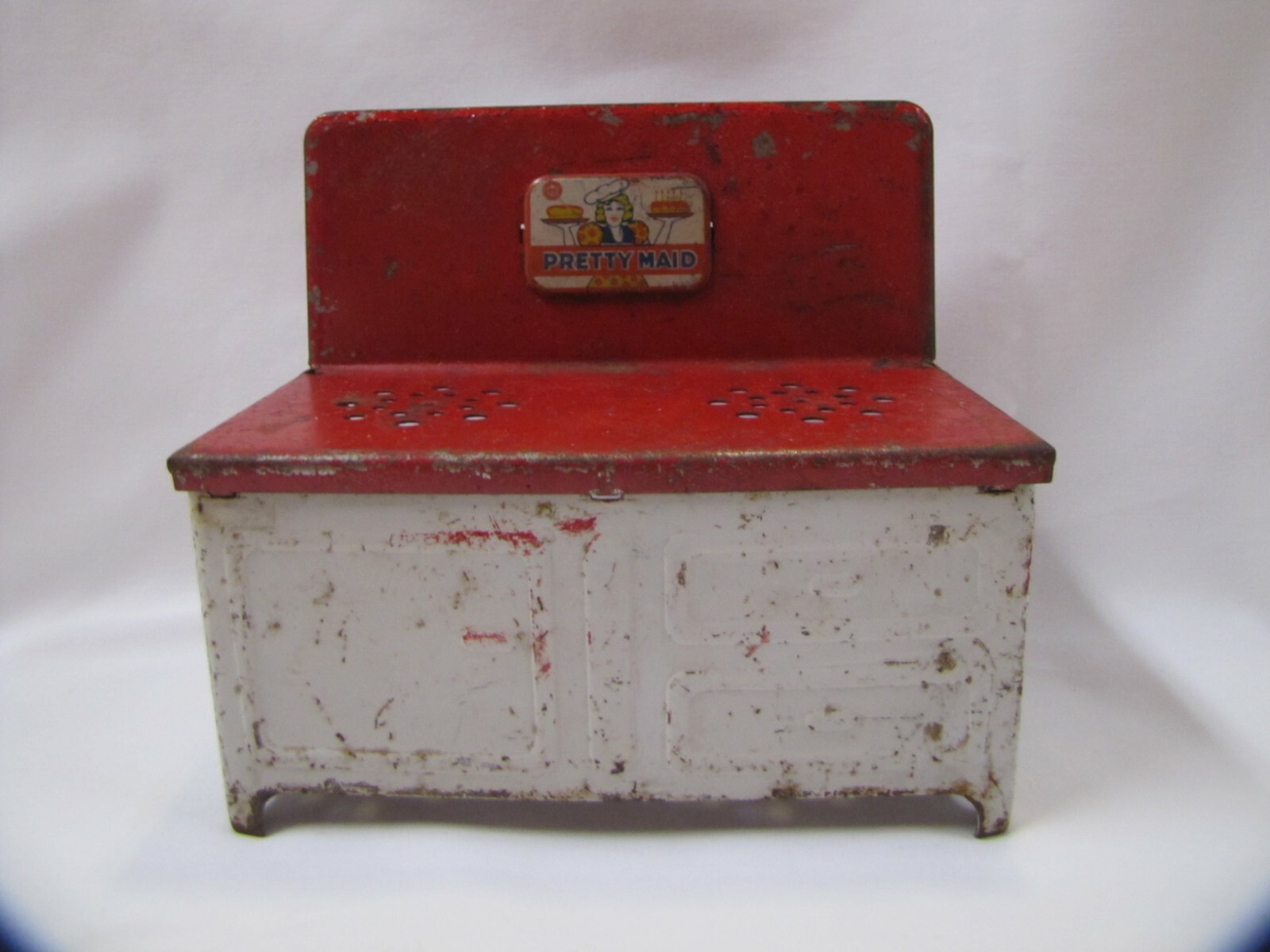 Pretty Maid Vintage Metal Stove Red White Marx Toys 1950s