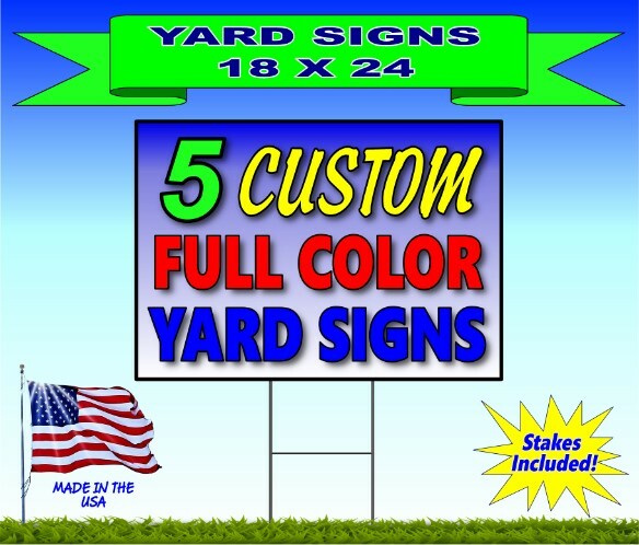 5 - 18x24 Yard Signs - Custom Design - Full Color - 2 Sided - Stakes Included