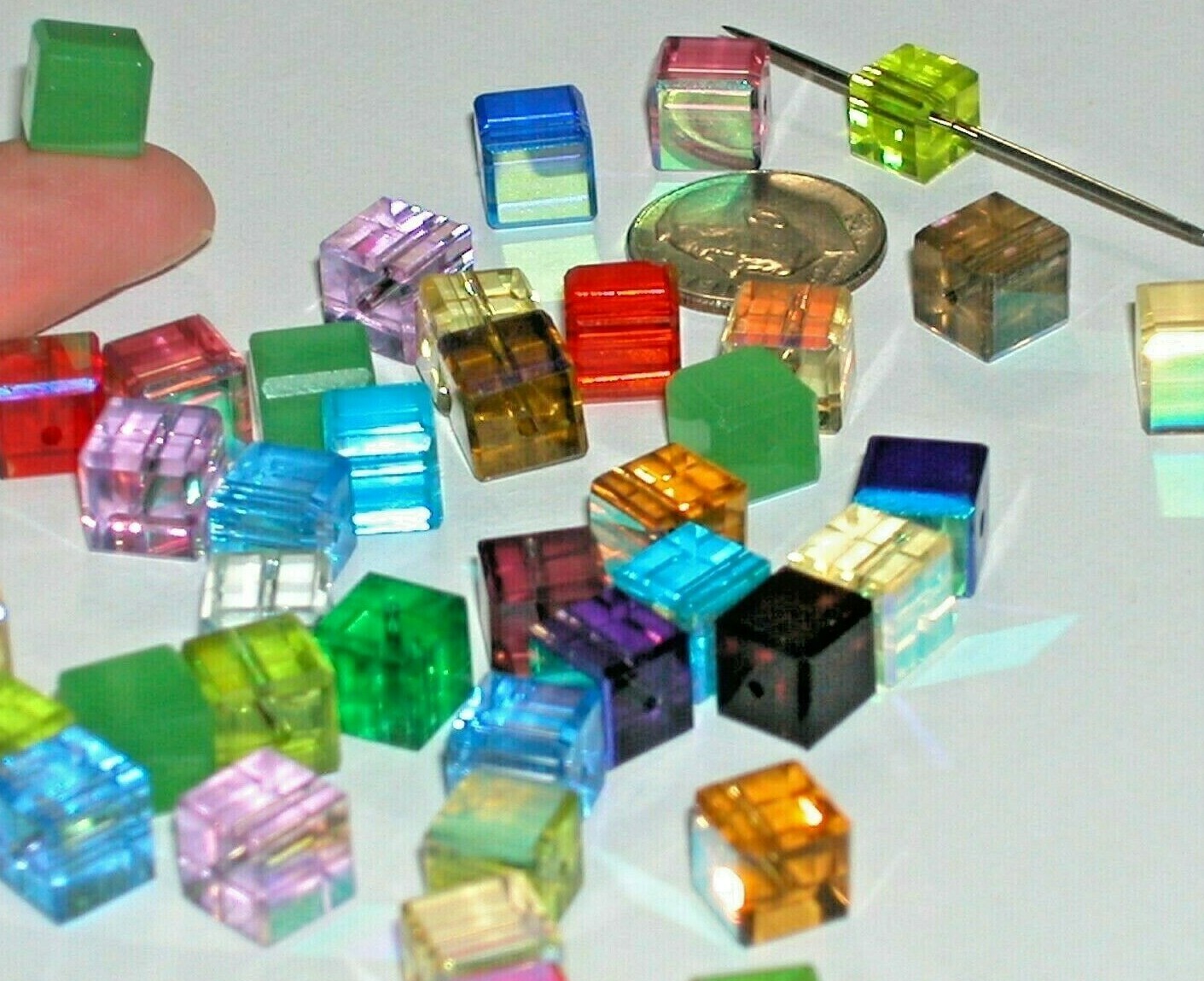 • 10pc.Crystal AB Rainbow Mix CUBE Square Beads with hole Supplies charms 8mm NEW